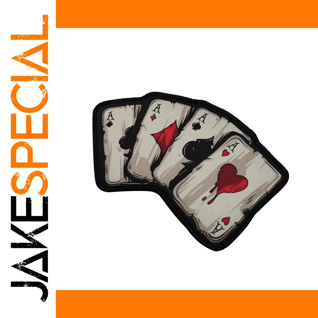 Imagine enhancing your wardrobe or gear with this bold punk-themed embroidered patch. Designed to resemble a fan of four distressed playing cards—aces of spades, diamonds, clubs, and hearts—this patch offers a rebellious and artistic flair. Its artistic, textured embroidery features a muted beige background with black borders, and the bright red accents on the diamond and heart cards make it stand out. The patch's 3D design gives it a dynamic, handcrafted feel, perfect for fans of punk fashion. Crafted from eco-friendly polyester, it’s versatile enough to adorn jackets, backpacks, hats, helmets, or military vests. Whether for personal style or customization, this patch makes a statement that’s both bold and unique.