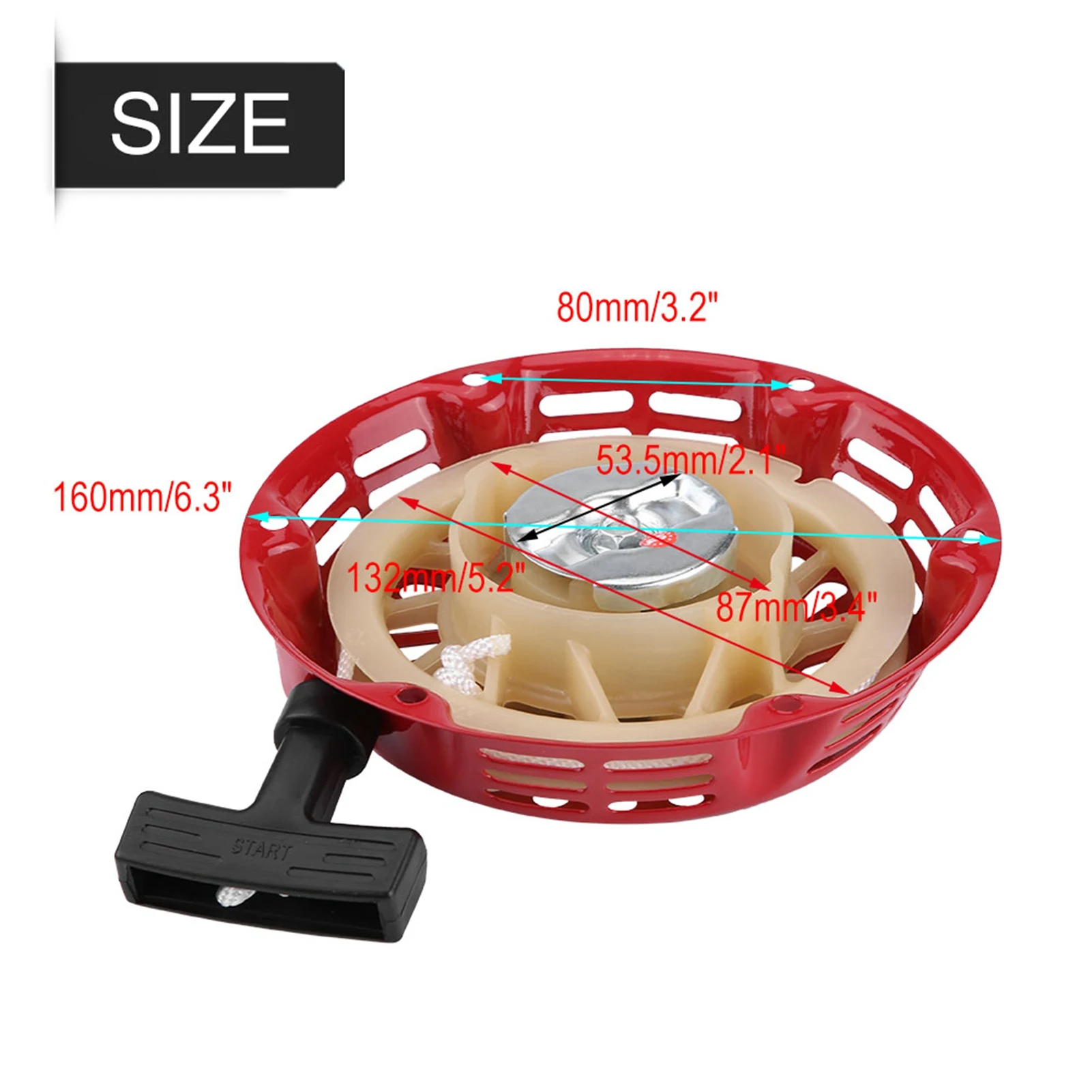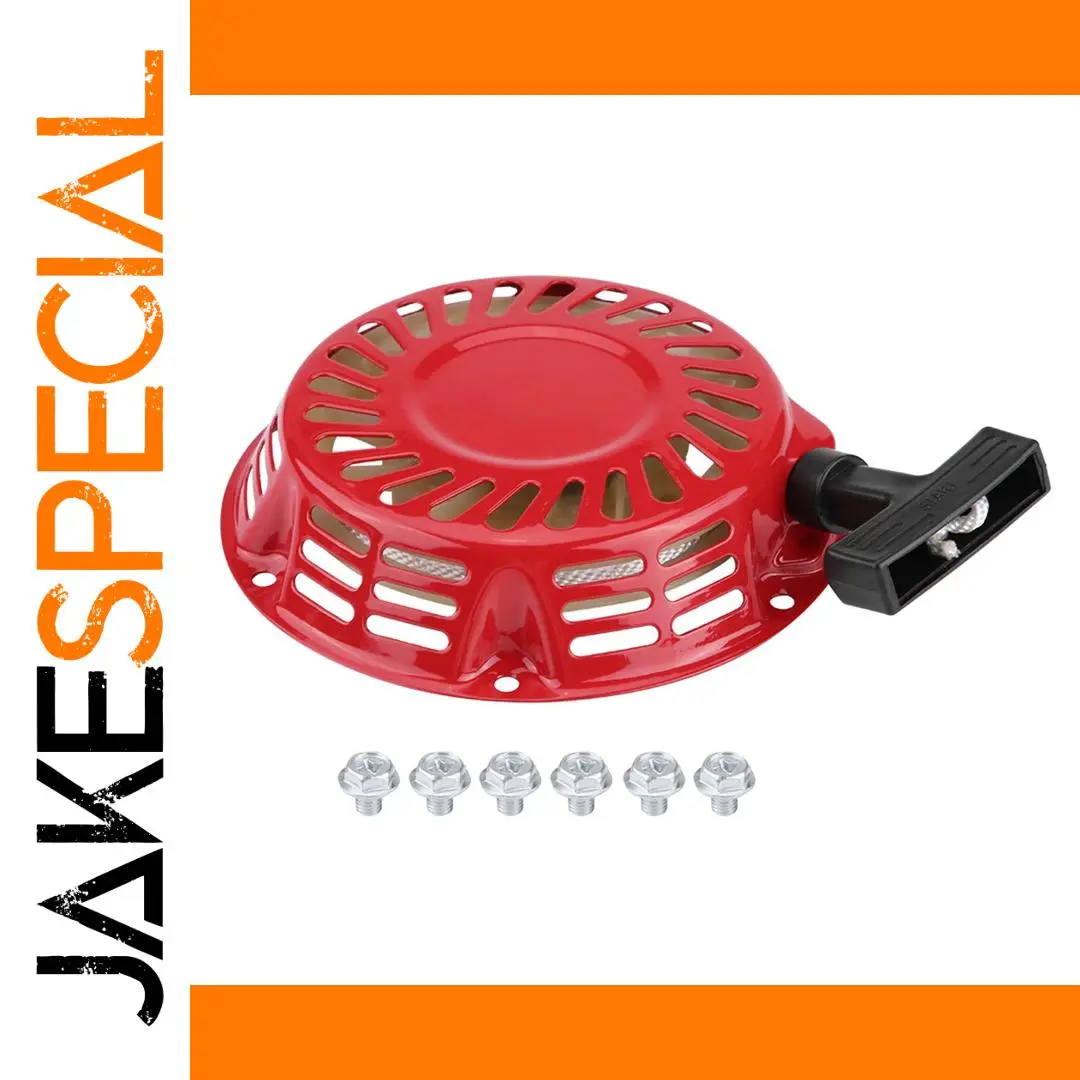 Imagine effortlessly starting your 2KW 168F gasoline generator with this durable and stylish recoil pull starter. Crafted from heavy-duty metal, its bright red, circular cover with a glossy finish adds a bold touch to your equipment while ensuring toughness and longevity. The vented design with evenly spaced elongated slots allows for optimal airflow and heat dissipation, keeping your generator running smoothly. The central raised dome enhances the structural integrity. The included black textured pull handle provides a firm grip, making starting more comfortable and secure. Weighing approximately 434 grams, this assembly is designed for easy installation, offering reliable, low-noise operation, and seamless performance to get your generator up and running in no time.