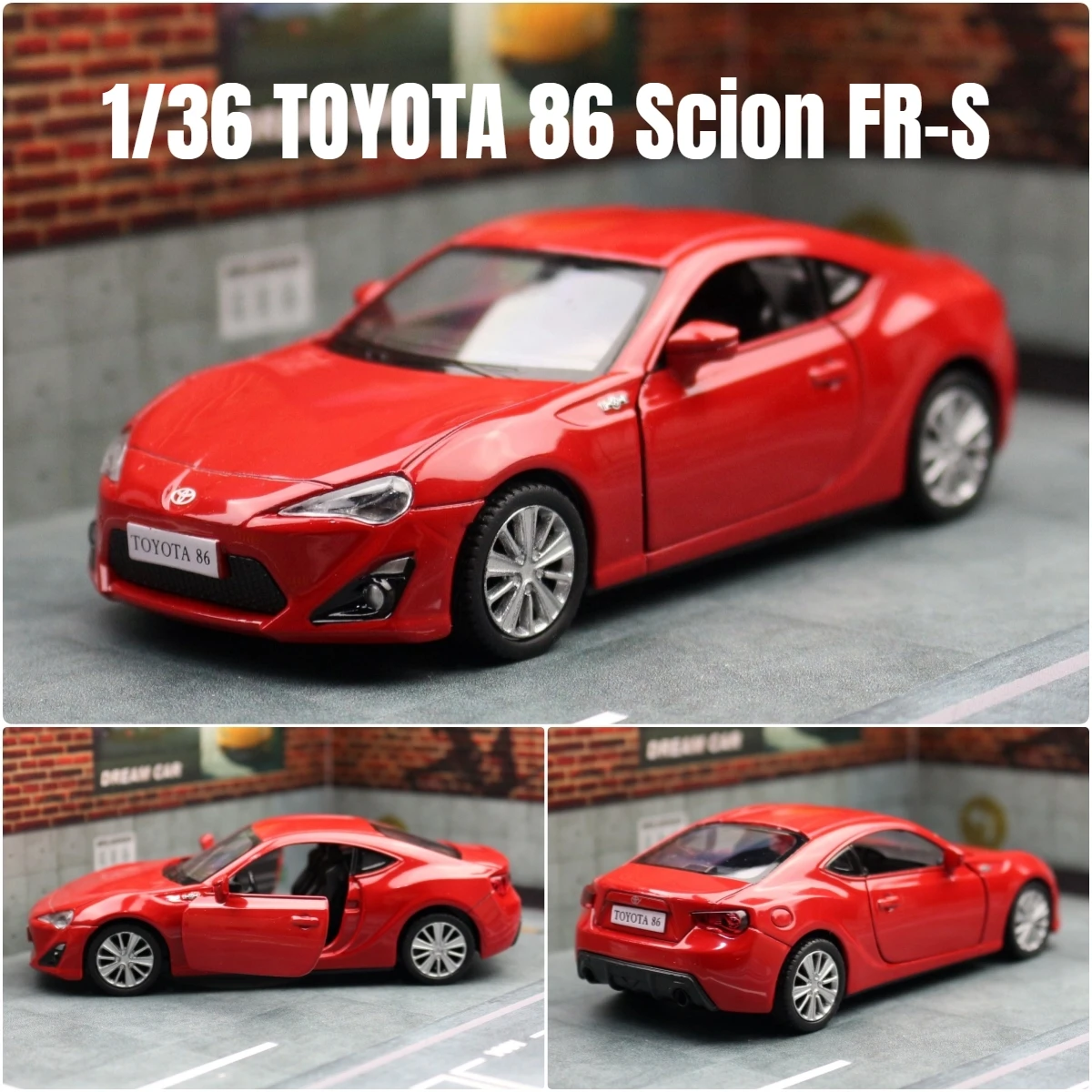 Experience the thrill of owning this expertly crafted 1/36 scale Toyota GT 86 (Scion FR-S) diecast model. With its vivid red finish, sleek aerodynamic silhouette, and intricate details, this miniature exudes sporty elegance. The sharp lines, angular headlights, and pointed front grille capture the essence of the full-sized car, while the black interior visible through transparent windows adds realism. The black plastic tires with multi-spoke silver rims provide an authentic appearance, complemented by the slim side mirrors and precisely molded doors. Designed for collectors and enthusiasts aged 14 and above, this pull-back model makes a perfect display piece or gift. Its diecast zinc alloy shell ensures durability and a high-quality finish, showcasing meticulous craftsmanship.