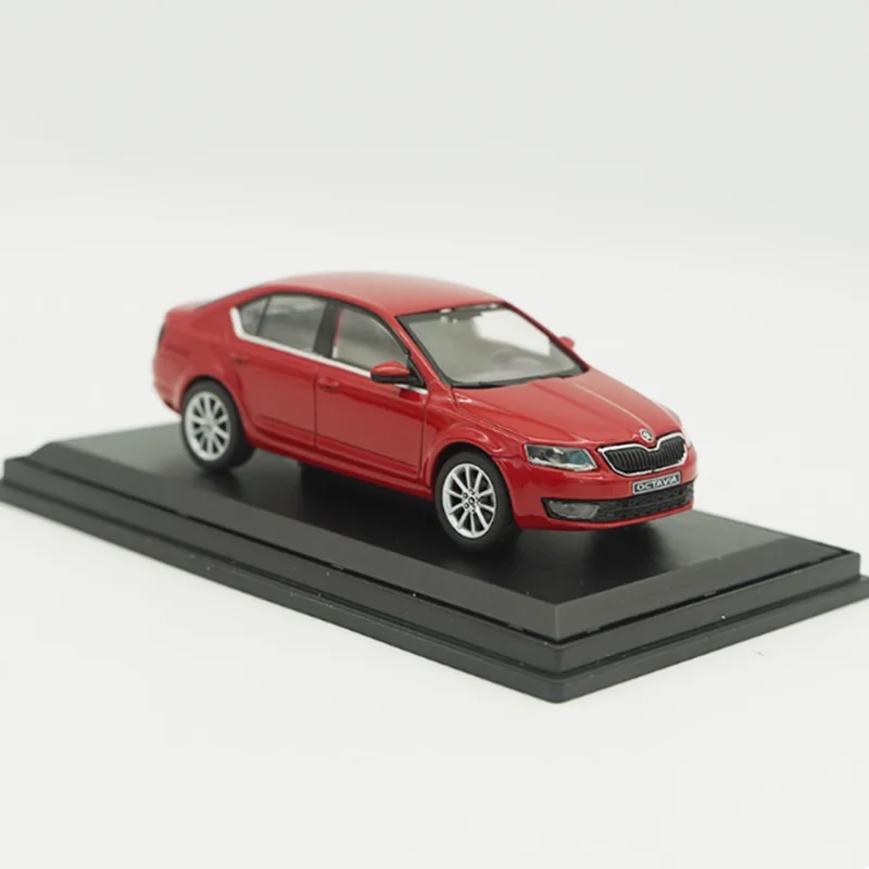 This 1/43 scale diecast alloy model of an Octavia showcases a vibrant, glossy red finish, detailed aerodynamic contours, and a sleek sedan silhouette. Featuring fine details such as a horizontally slatted grille, clear lens headlights with internal intricacy, subtle door handles, transparent windows revealing the interior, and multi-spoke alloy wheels with textured tires, it embodies high craftsmanship and realistic design. Perfect for collectors and display enthusiasts, this finished static model highlights modern, sporty styling with precision and clarity. Made from durable alloy, it serves as an elegant decorative piece or gift, emphasizing quality craftsmanship without electrical components or batteries, suitable for ages 14 and above.