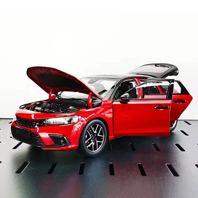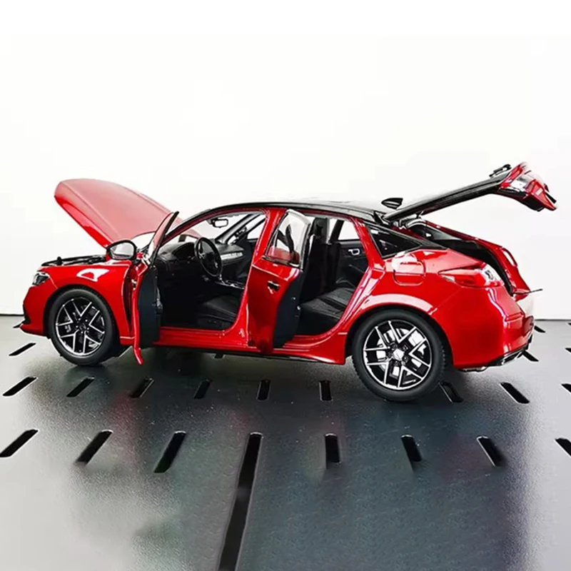 Step into the world of detailed craftsmanship with this highly realistic 1:18 scale alloy car model. Finished in a vibrant, glossy red, this model captures the sporty and modern aesthetic of a contemporary hatchback. Its aerodynamic design features a sleek silhouette, sharp front fascia with black mesh grille, and narrow LED-style headlights. The black side mirrors and window trims sharply contrast the red body, highlighting its polished look. The detailed alloy wheels with multi-spoke pattern, low-profile tires, and rear spoiler enhance its sporty allure. Carefully designed vent-like rear bumper elements and wrap-around taillights add a touch of realism. Perfect for mature collectors, this model boasts meticulous detailing, quality materials, and a durable metal construction, making it a sharp addition to any collection or gift.
