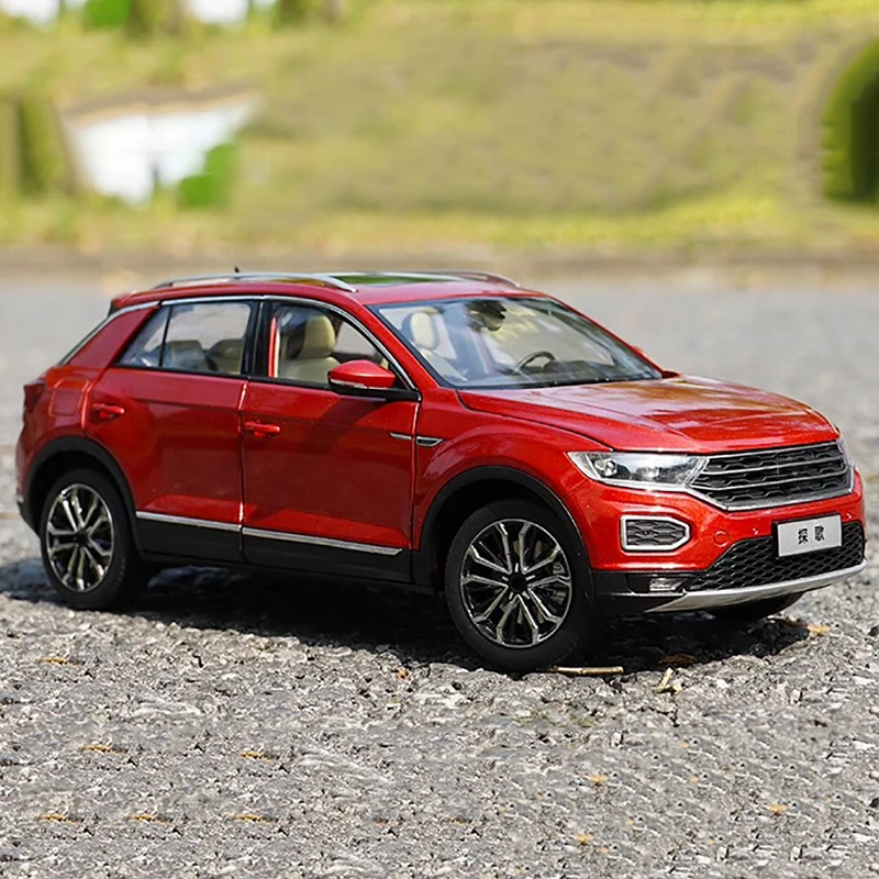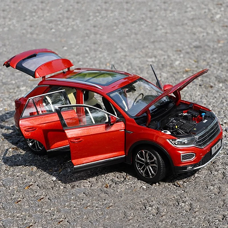 Immerse yourself in the detailed craftsmanship of this vibrant red alloy T-Roc SUV replica. Measuring approximately 28 cm in length, 9 cm in width, and 11 cm in height, this 1:18 scale model features realistic design elements that highlight its sporty, modern aesthetic. With functional opening doors, a liftable engine hood, and an open trunk, you can appreciate the intricate interior and mechanical details. The four-wheel-drive system with working shock absorbers adds to its authenticity. Made from alloy, plastic, and rubber, it’s perfect for collectors and enthusiasts alike. Its glossy finish and precise detailing make it an outstanding decorative piece that promises to impress and inspire admiration in your collection.