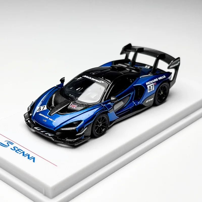 - Scaled at 1/64, the model features intricate aerodynamic details including a wide grille, rear diffuser, and textured carbon-fiber-like rear wing support.