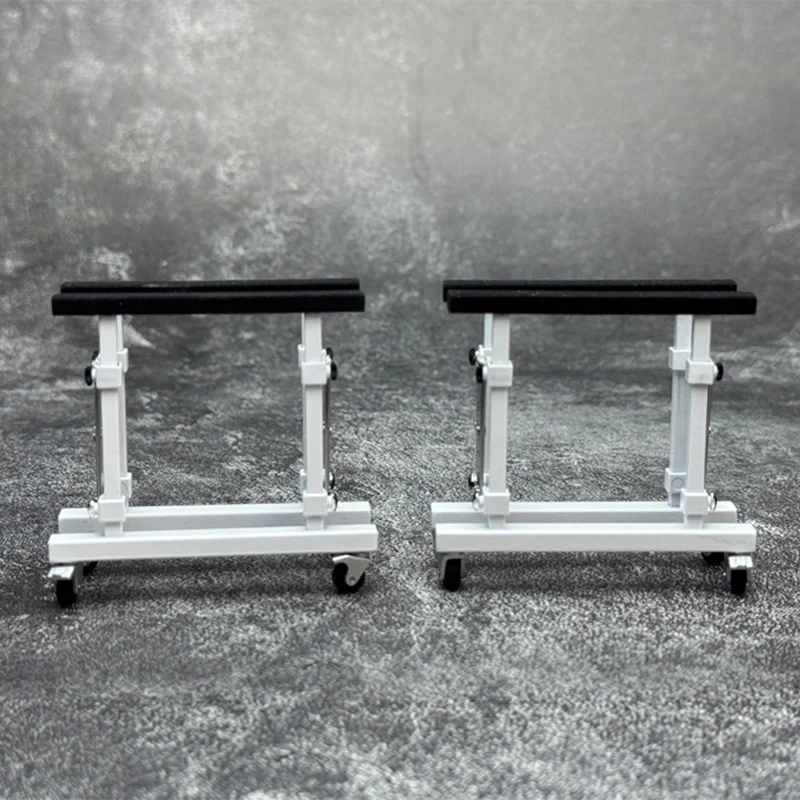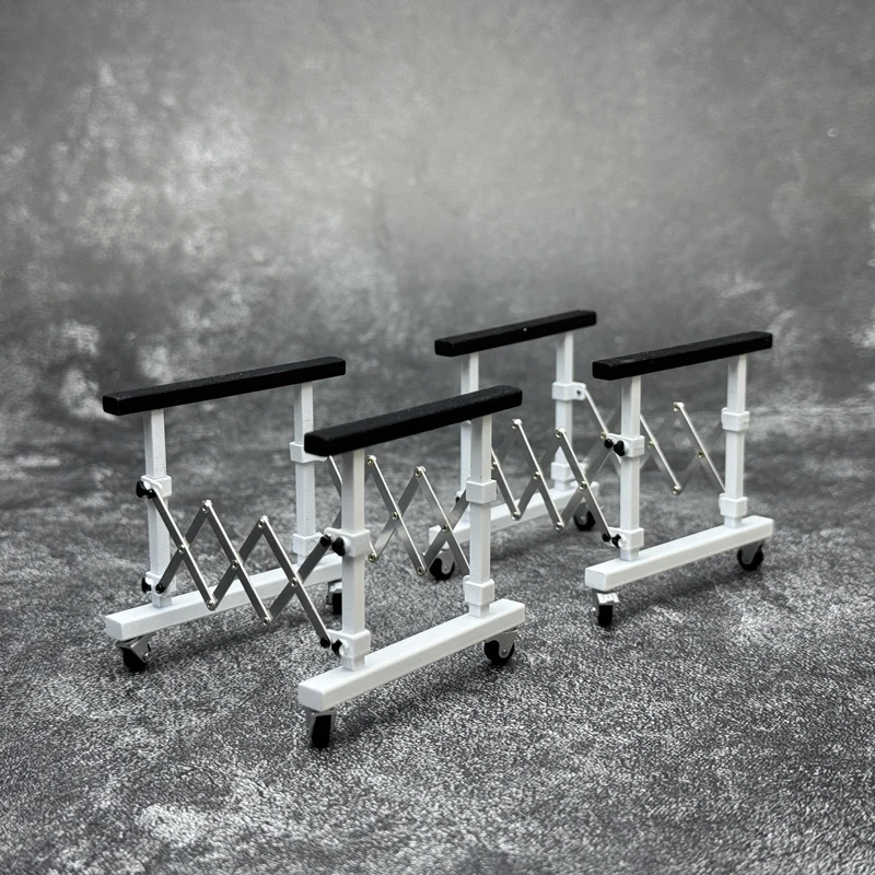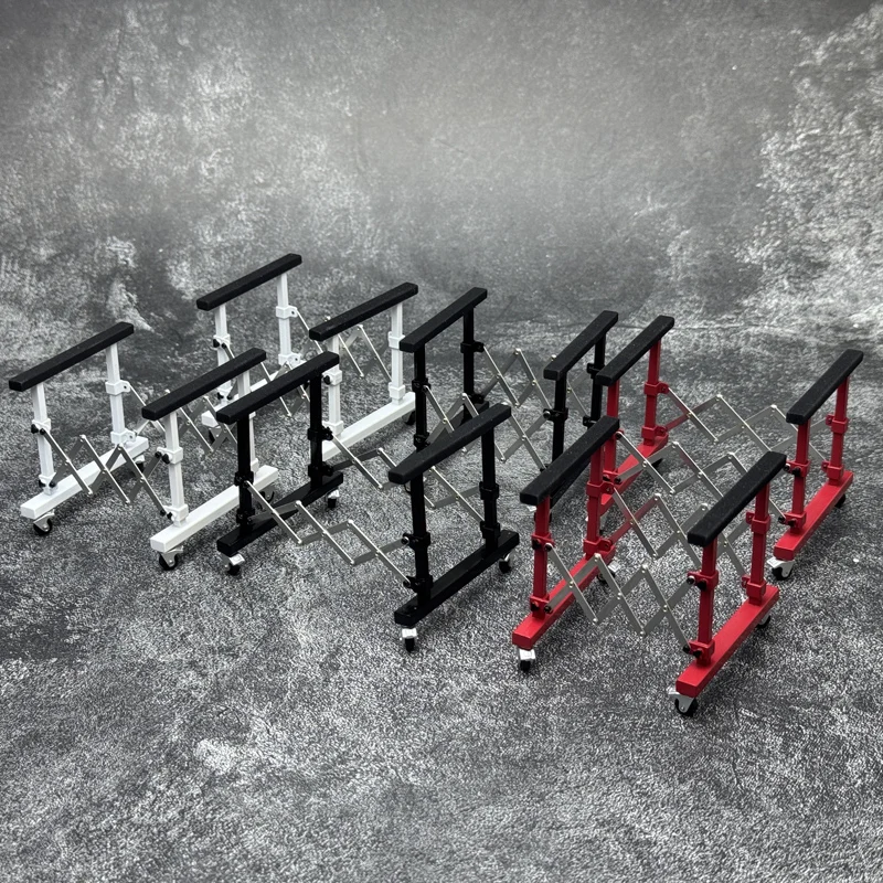 Experience the perfect blend of style and functionality with this set of two diecast car stands designed for your 1:18 scale Huayra R model. Crafted from durable metal, these stands feature a striking combination of vibrant red uprights and sleek black support bars. The extendable, cross-braced scissor mechanisms, finished in metallic silver, ensure stability while allowing height adjustment. The cushioned foam supports gently cradle the front or rear hood of your model, presenting it elegantly. Equipped with small black caster wheels, the stands are mobile and easy to position, making your display both practical and eye-catching. Transform your collection into a sophisticated showcase with these modern, industrial-inspired stands that highlight the beauty of your model car, perfect for enthusiasts who value both aesthetics and sturdiness.