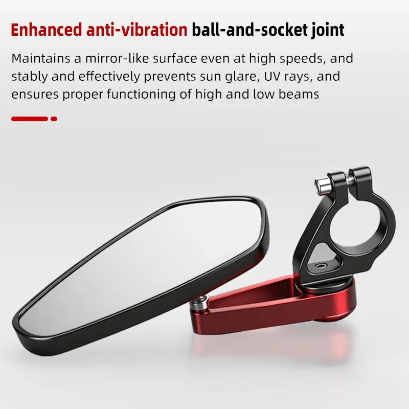 Enhance your riding experience with this CNC aluminum motorcycle handlebar mirror, measuring 20 cm in length, 13.5 cm in width, and 6.5 cm in height, weighing 507 grams. Featuring a convex, clear glass lens with a wide-angle 180-degree rotation, it effectively eliminates blind spots for safer maneuvering. Designed for standard 7/8″ (22mm) handlebars, it offers compatibility with hollow or threaded handles, with some minor modifications possible for installation. Available in Black, Blue, Gold, and Red, this durable and stylish mirror seamlessly combines modern aesthetics with functional performance, ensuring a clear, undistorted view of your surroundings and confidence on every ride.