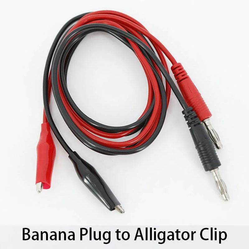 This test cable set features a sleek, professional design with vibrant red and classic black insulation, making positive and negative connections easily identifiable. The cables are made of flexible, durable insulated wiring with a smooth matte finish for comfortable handling and longevity. Each cable is terminated with a 4mm banana plug, cylindrical with a metal tip and ribbed, insulated plastic housing for secure grip. The accompanying alligator clips are fully insulated, approximately 28mm in size, with hardened tips designed to resist blunting after repeated use. These high-quality connectors are suitable for precise electronic testing, including multimeters and power supplies. Available in 0.5-meter and 1-meter lengths, this set caters to various testing scenarios, combining durability, safety, and clarity for all your electrical diagnostic needs.