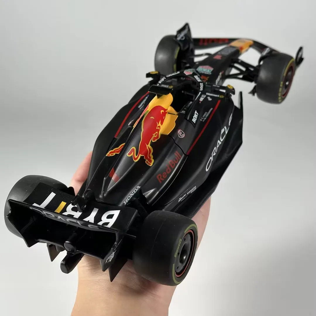 Experience the thrill of Formula 1 with this 1:18 scale diecast model of the Red Bull Racing RB19 from the 2023 season. Crafted from durable alloy metal, this sleek black replica features intricate aerodynamic details, including front and rear wings, a precise cockpit, and realistic tires with textured tread. Its high-quality construction and authentic sponsor logos in white, red, yellow, and other vibrant colors showcase the car’s aggressive, high-performance stance, making it an ideal collectible or display piece for dedicated enthusiasts and serious collectors aged 14 and above. Add this detailed model to your collection and relive the excitement of professional racing.