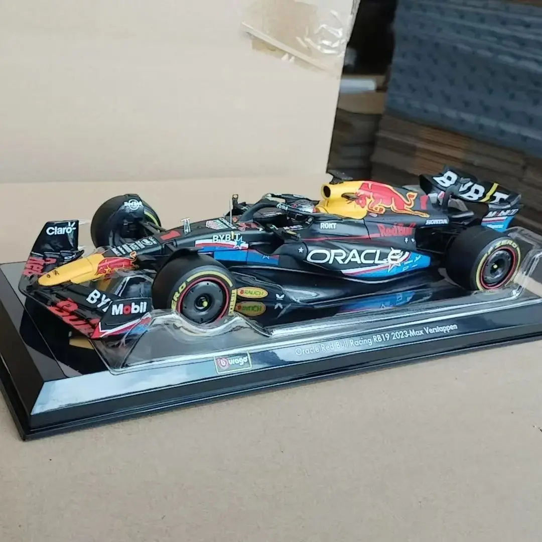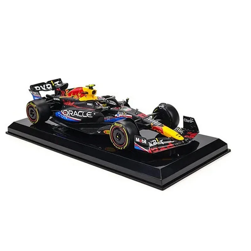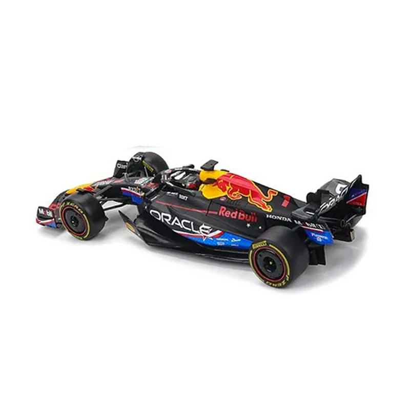 Experience the thrill of Formula 1 with this meticulously crafted diecast model of the Red Bull RB19, representing the Austin GP. This 1:24 scale collectible boasts a sleek, aerodynamic body finished in a striking black with vibrant livery accents. Its alloy construction ensures durability and a shiny, metallic appearance, capturing the high-performance spirit of the original racing car. Every detail, from the aerodynamic front wing with multiple extensions to the intricately modeled suspension, wheels, and rear wing, reflects expert craftsmanship. The sponsor logos, including Oracle, Red Bull, and Mobil, are prominently displayed, adding vibrant contrast. Ideal for passionate collectors, this model embodies speed, precision, and bold design, making it an impressive addition to your motorsport collection.