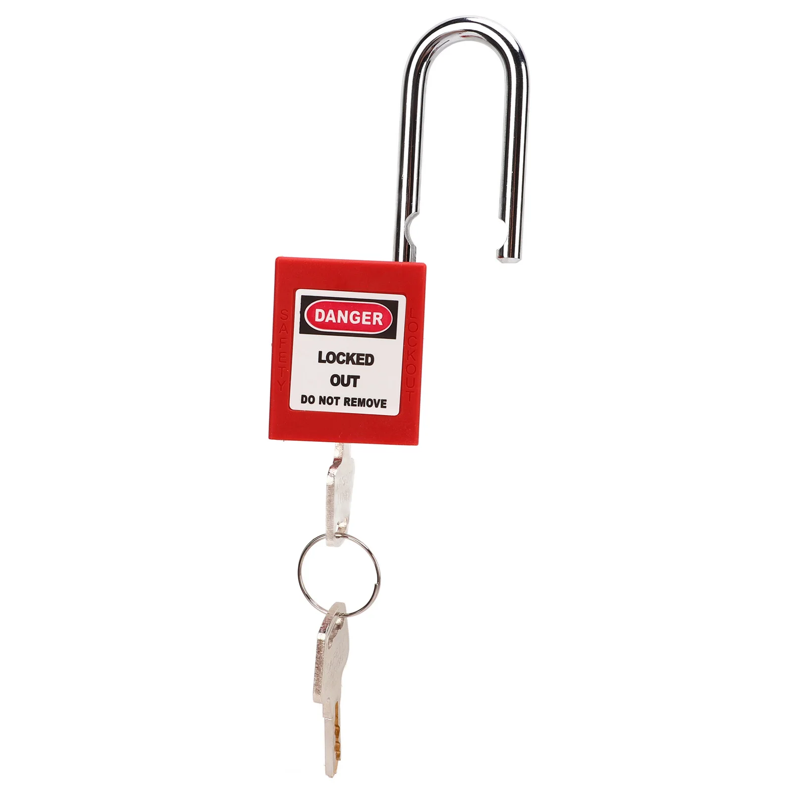 Ensure safety and lockout efficiency with this vibrant red clamp-type circuit breaker lock set, constructed from impact-resistant reinforced PA nylon and featuring a durable chrome-plated metal lock beam. Designed for molded case circuit breakers with a handle width of up to 16.5mm, the lock boasts a sturdy 38mm (1.5″) tall lock beam with a 6mm (0.24″) diameter shackle. The set includes one lock, a keyed padlock with a black locking mechanism, and two keys, making it ideal for industrial environments in power, chemical, automotive, and other sectors. Its sleek, modern design enhances safety visibility and ensures reliable lockout operations.