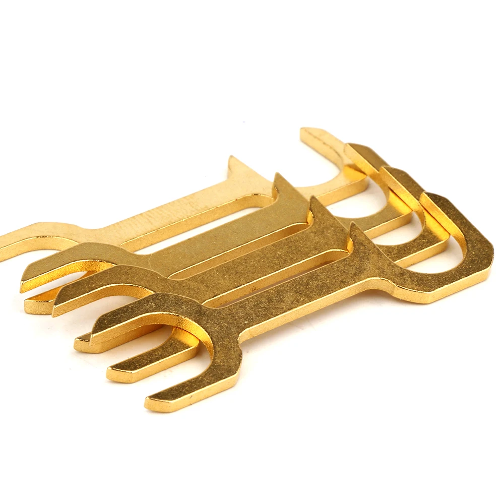 Experience superior audio clarity with this high-quality speaker binding post bridge crafted from pure red copper. Its polished surface and warm copper-tone finish enhance the aesthetic appeal, making it a perfect addition to any high-end audio setup. Designed with precision, this connector features a sleek, elongated, flat profile measuring 50mm in length and 15mm in width, with a slim 2mm thickness. The U-shaped fork tip, tapered for a secure fit, ensures optimal connection and minimal signal loss. Whether you're upgrading your existing system or building a custom setup, this bridge offers durability, style, and excellent conductivity, elevating your listening experience to a new level of sophistication.