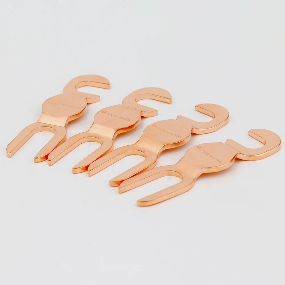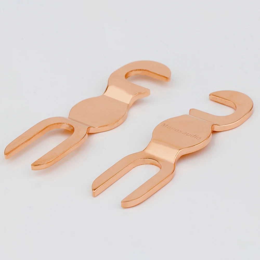 - Available in various finishes: gold-plated, silver-plated, rhodium-plated, and red copper to match your audio equipment’s style.