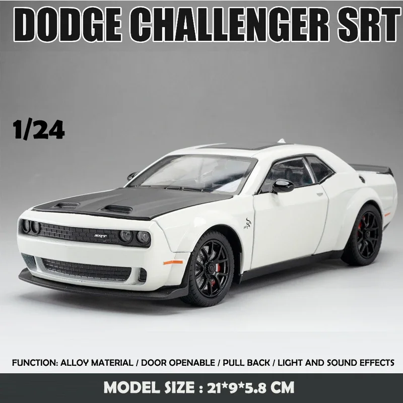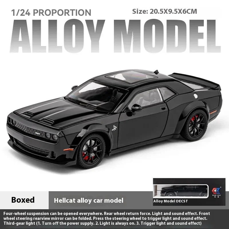 Experience the thrill of the Dodge Challenger Hellcat SRT with this highly detailed 1:24 scale diecast model. Crafted from durable plastic with alloy accents, this vibrant red miniature features a sleek, aerodynamic body, functional vents on the hood, and realistic multispoke black rims with low-profile tires. It includes authentic sound and light effects, activated without batteries, enhancing its display appeal. Available in various colors and packaging options, this collector’s item is perfect for enthusiasts aged 14 and above, offering a stunning combination of realism and aesthetic detail that brings the sporty, aggressive stance of the original vehicle to your collection.