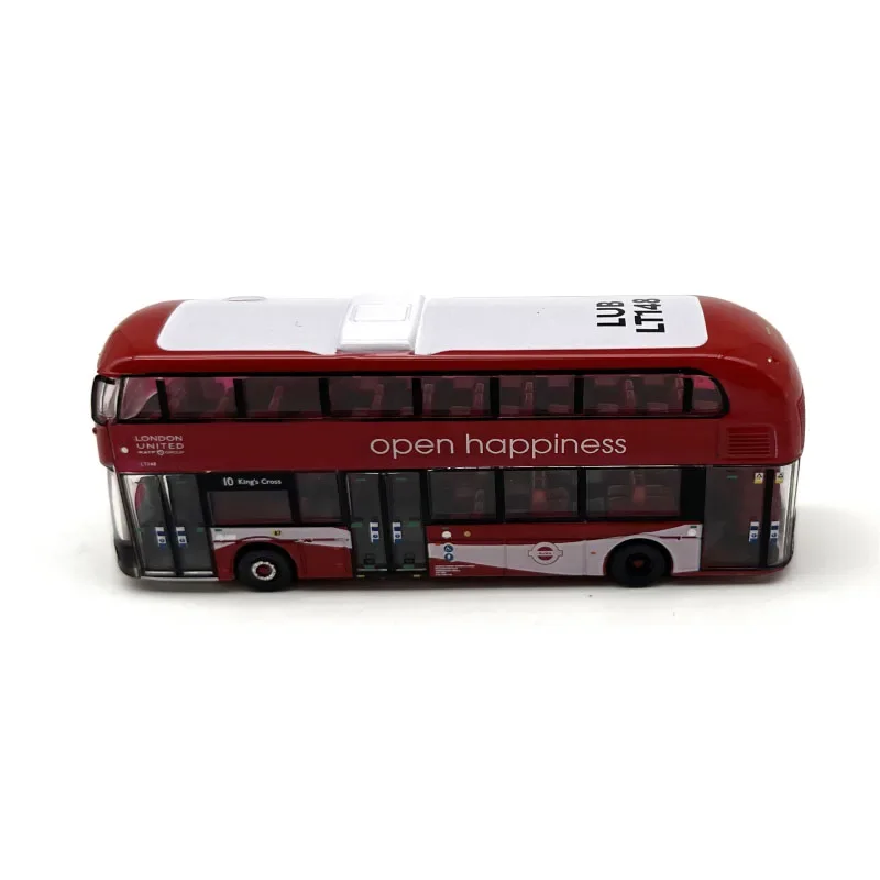 Bring home a meticulously crafted 1:148 scale diecast alloy model of a vibrant red urban double-decker bus, measuring 7.5 cm in length, 1.6 cm in width, and 2.7 cm in height. Made from durable alloy and ABS plastic using die-casting technology, this detailed collectible features realistic design elements such as clear multi-level windows, black window framing, and authentic side decals. Perfect for display, it is suitable for ages 14 and up, offering a lifelike miniature with intricate craftsmanship that captures the classic bus aesthetic. An ideal souvenir or gift for collectors and enthusiasts alike.