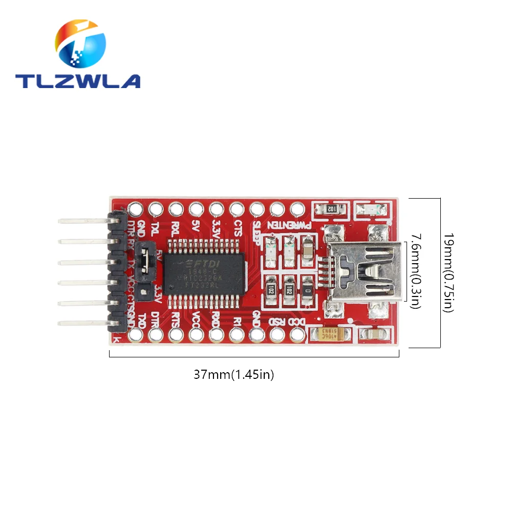 - This adapter uses the FT232RL chip supporting 3.3V and 5V outputs, enabling flexible power options for various microcontrollers and projects.