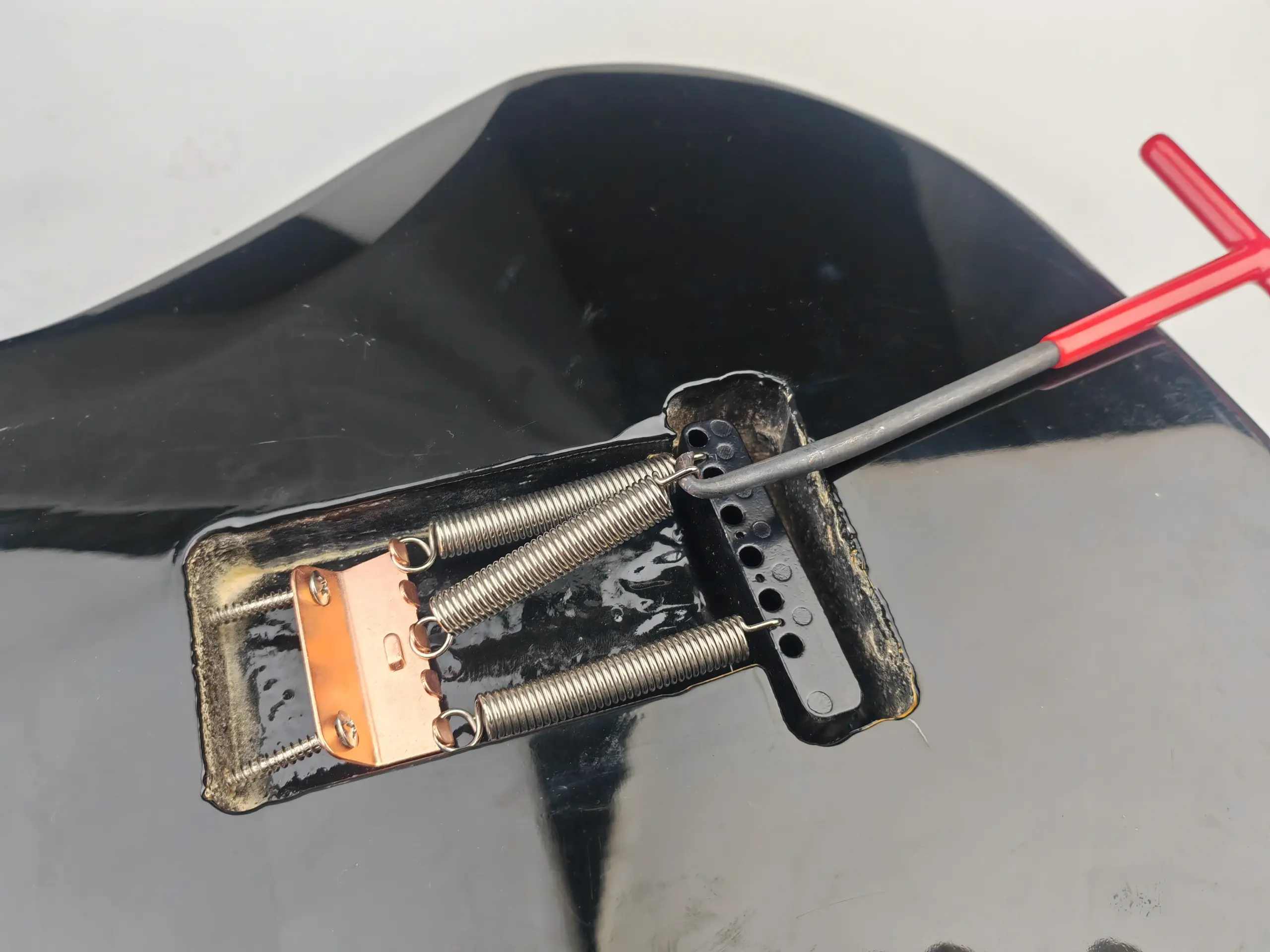 - The durable black metal shaft is bent at an optimal angle near the tip, allowing easy access to hard-to-reach tremolo springs without damaging other components.
