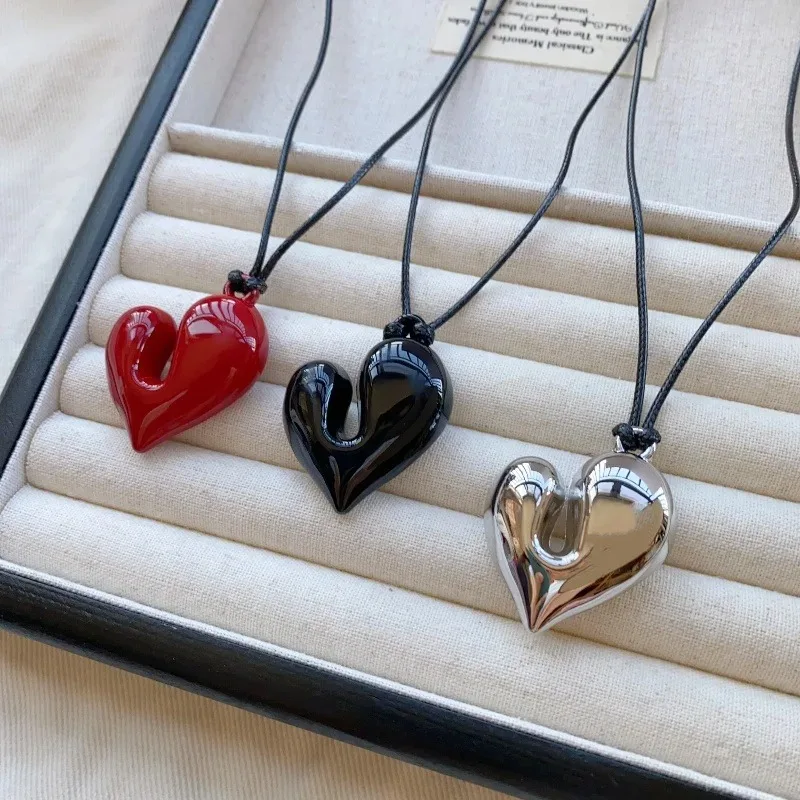 Imagine elevating your everyday style with this beautiful red heart-shaped pendant necklace. Its glossy, slightly irregular shape radiates a sweet, romantic vibe perfect for casual outings or special parties. The delicate black rope-style chain, combined with the adjustable pull-out sweater chain made of acrylic, ensures a comfortable fit and modern look. Whether you're dressing up or down, this piece adds a touch of youthful elegance and playful charm to any outfit. Its vibrant red hue makes it a standout accessory, while the romantic heart shape speaks to your unique style and personality. Own it now to enhance your wardrobe with a piece that’s both fashionable and meaningful, perfect for expressing your love or personal style effortlessly.