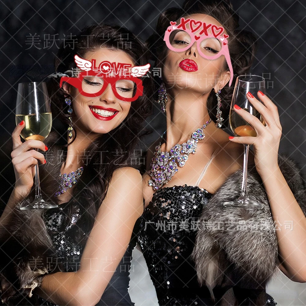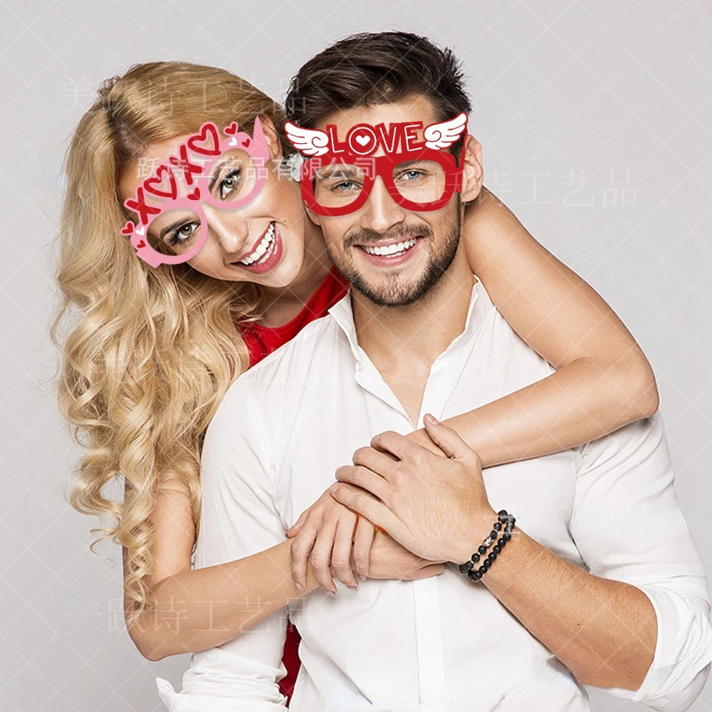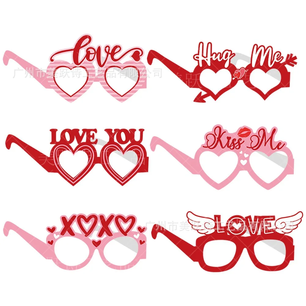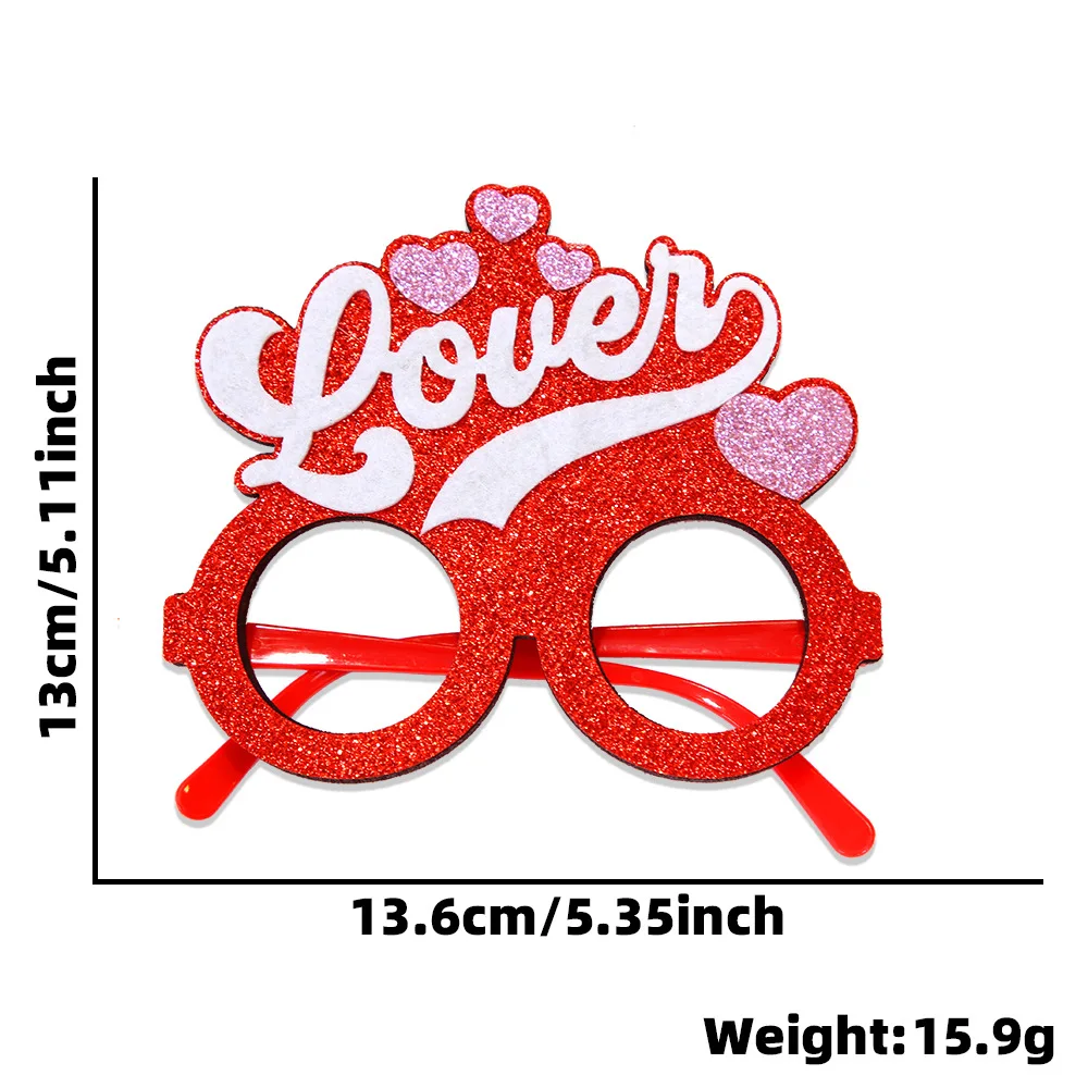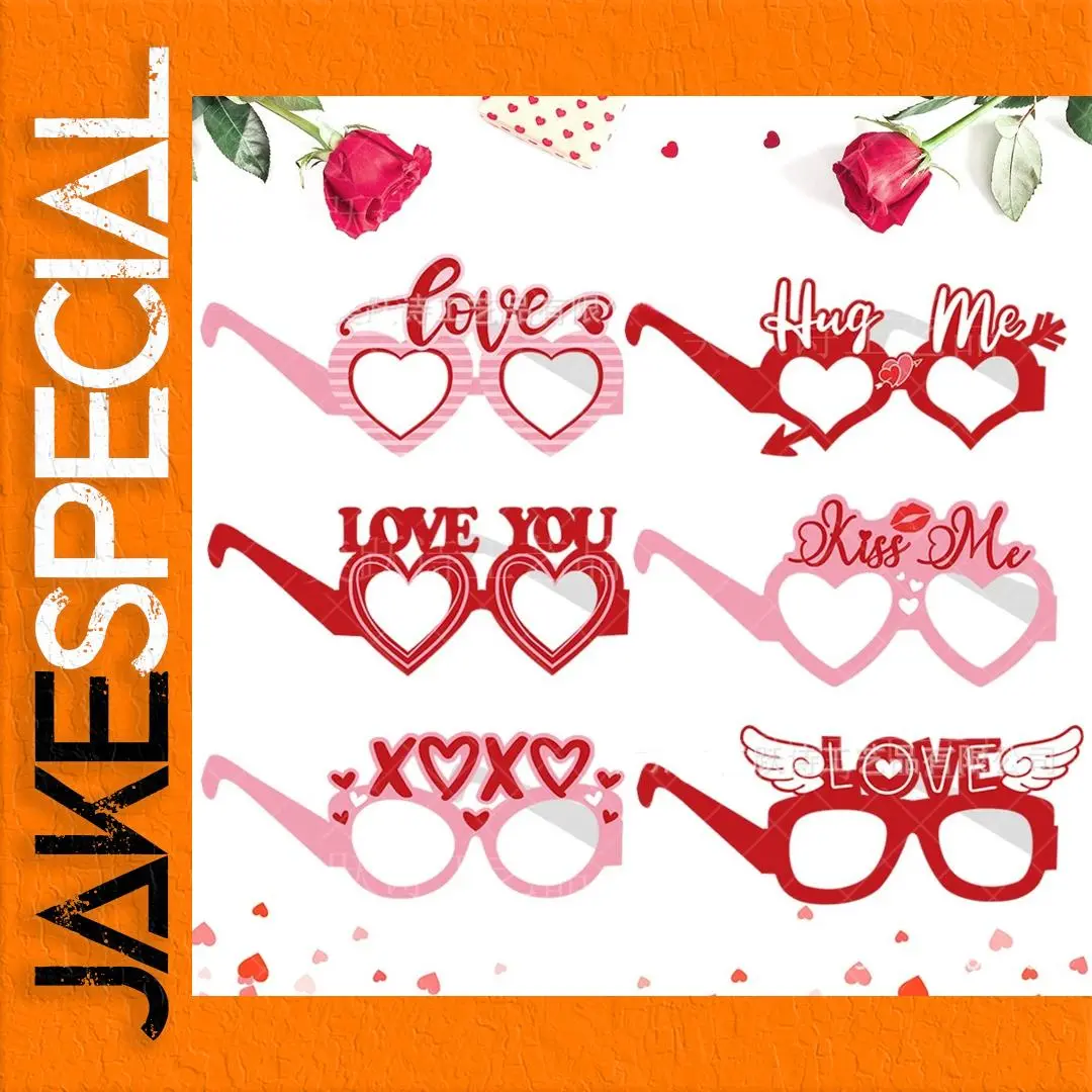 Celebrate love and festivities with this set of six plastic novelty glasses featuring romantic heart-shaped designs in vibrant pink and red colors. Each pair showcases playful phrases like “Love,” “Hug Me,” and “Kiss Me,” along with decorative patterns such as small hearts, XOXO, and bold “LOVE YOU” motifs. Designed for occasions like weddings, Valentine’s Day, Christmas, and festivals, these charming photo booth props add a whimsical touch to any celebration. Made from durable plastic, the glasses measure as shown in the image, with minor size variations of 1-3 cm due to manual measurement. Perfect for creating memorable and romantic moments.