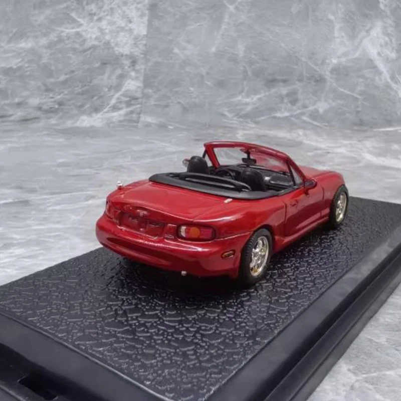 Experience the thrill of owning this meticulously crafted 1/43 scale diecast Mazda MX5 Convertible. Designed for adult collectors, this detailed alloy model captures the sleek, sporty silhouette with flowing curves and a gently sloping hood. The glossy red finish adds an energetic vibe, perfectly highlighting its dynamic appeal. Transparent windshield and subtle interior details bring realism, while oval headlights with clear lenses showcase top craftsmanship. Silver alloy rims on black tires provide contrast, elevating the overall aesthetic. Mounted on a textured black display base, this collectible piece offers a polished look that will enhance any collection or display space. It’s a must-have for car enthusiasts seeking quality miniature replicas.