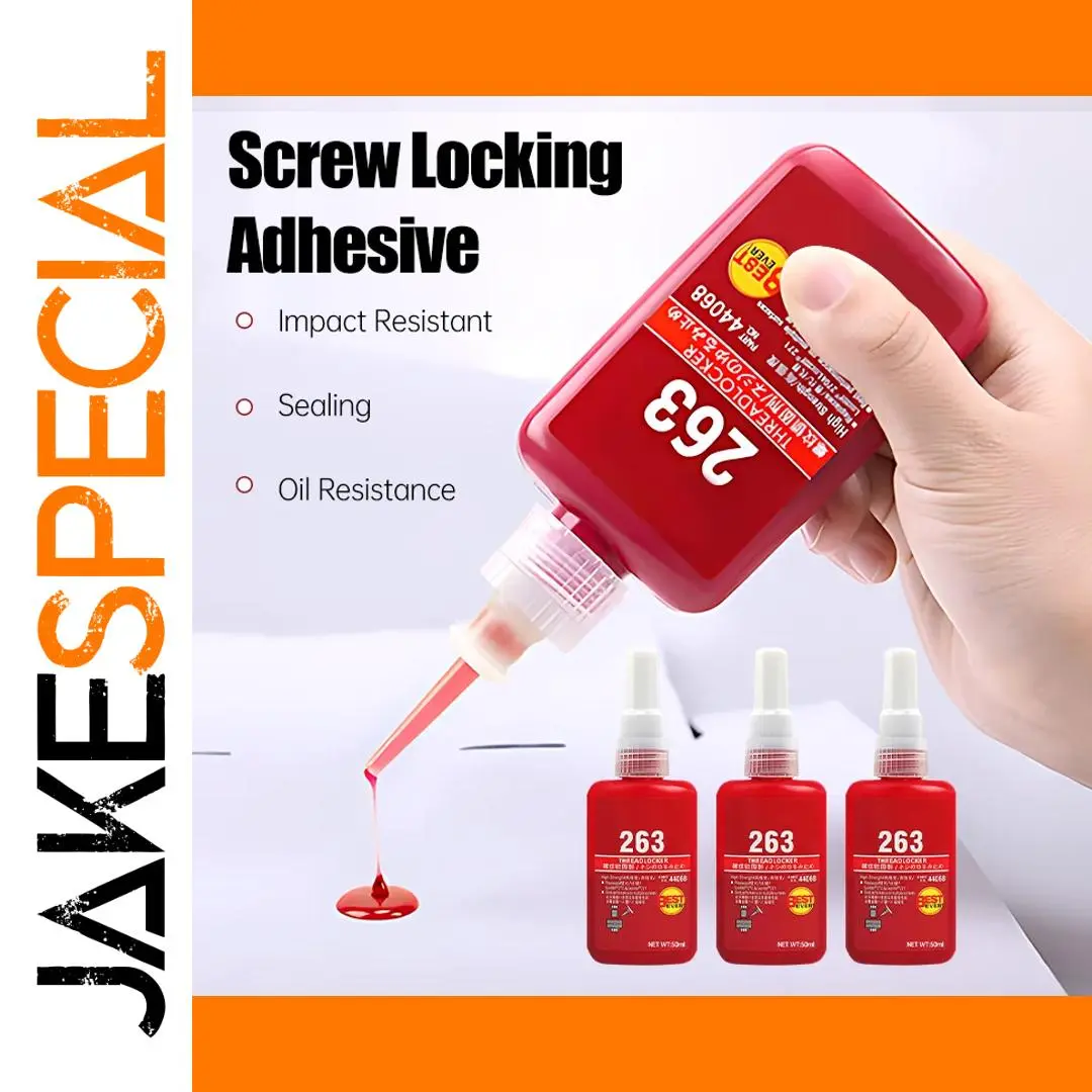 - This 50ml adhesive features a vibrant red hue, with a glossy surface that ensures visibility and easy identification during application. Perfect for securing threaded metal parts with precision.