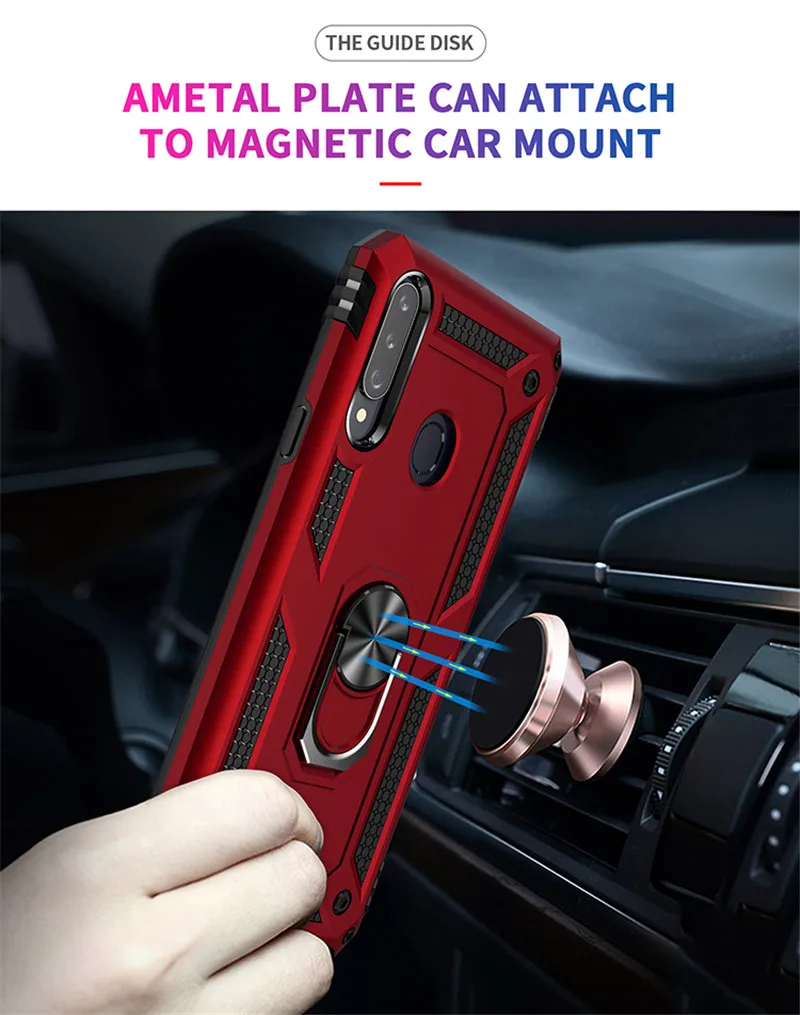 Experience the perfect blend of durability and style with this rugged red armor case designed specifically for Samsung Galaxy A20s and A20 smartphones. This military-inspired protective cover provides robust shock absorption, scratch resistance, and impact protection, making it ideal for active users who demand resilience. Its textured honeycomb pattern enhances grip and adds a tactical aesthetic. The case features reinforced corners and edges to safeguard your device from accidental drops. A built-in, rotatable metal ring holder not only offers a secure grip but also functions as a stand and magnetic support for car mounts. Elevate your phone’s defense while maintaining easy access to all features with this bold, functional case.
