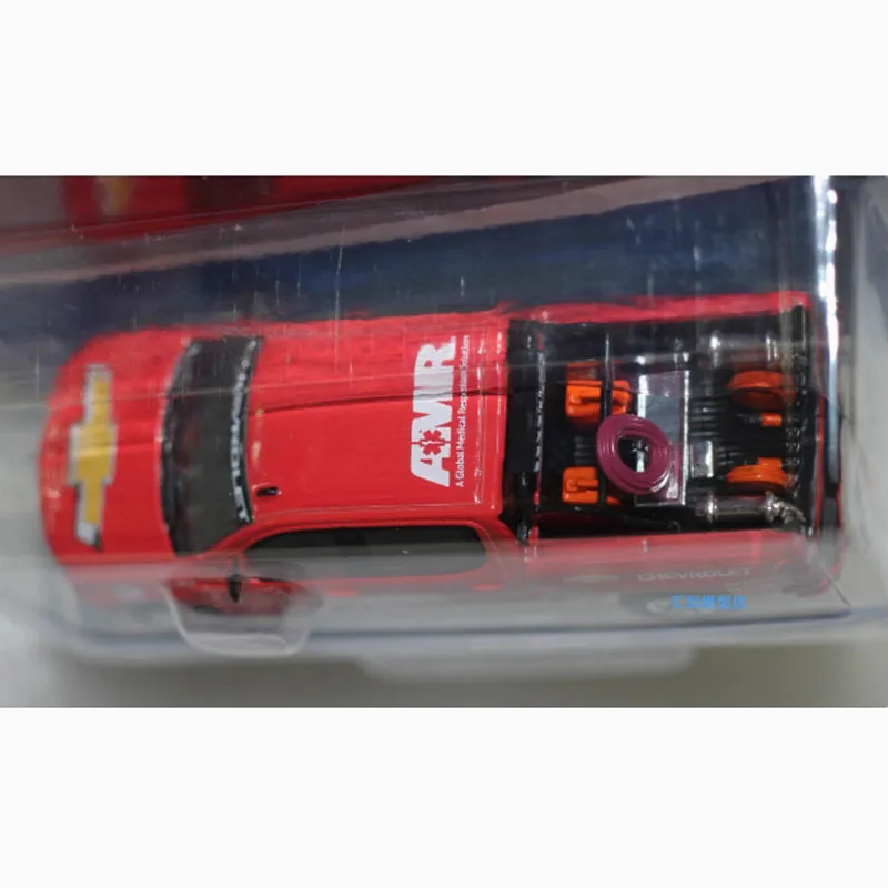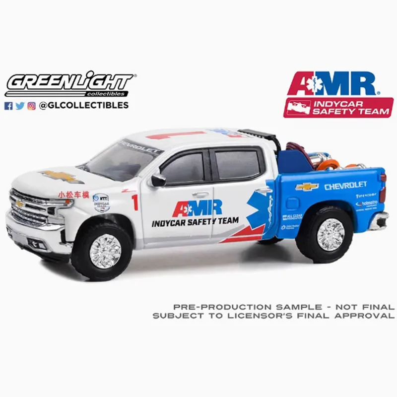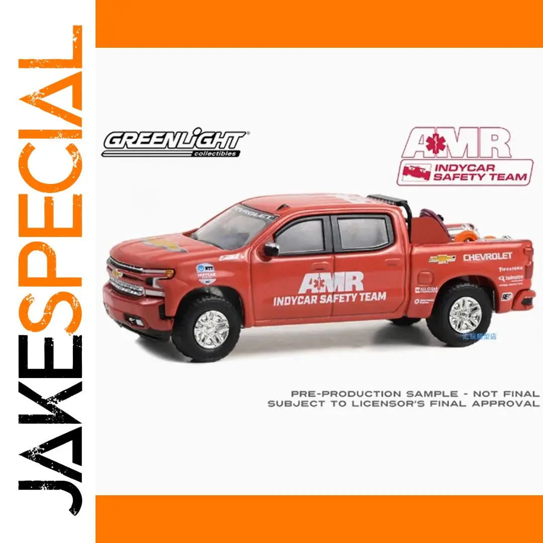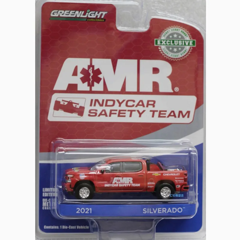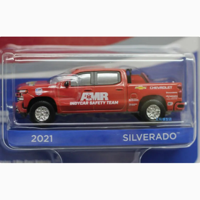 Experience the thrill of owning this highly detailed diecast Silverado truck, scaled at 1:64, perfect for display and collection. Crafted from alloy and plastic, it boasts a glossy, racing-inspired red finish with authentic decals and logos, including the prominent “AMR INDCAR SAFETY TEAM.” Realistic features such as black side mirrors, clear windows, and polished silver wheels with intricate rims make this model truly lifelike. The finely modeled front grille with horizontal slats and molded headlights further enhance its realistic appearance. Whether you're a collector or looking for a striking gift, this model captures the sleek modern design of a Chevrolet Silverado used by safety teams. Its vibrant colors and detailed surface textures promise an eye-catching display piece.