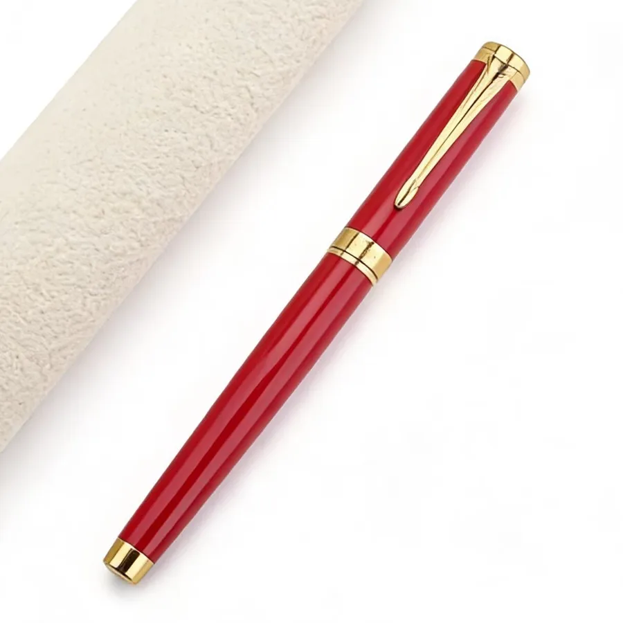 - Vibrant glossy red metal body with a sleek, streamlined shape for style and comfort during extended writing sessions.