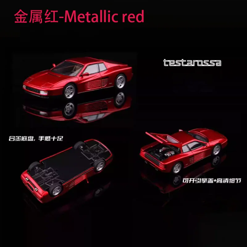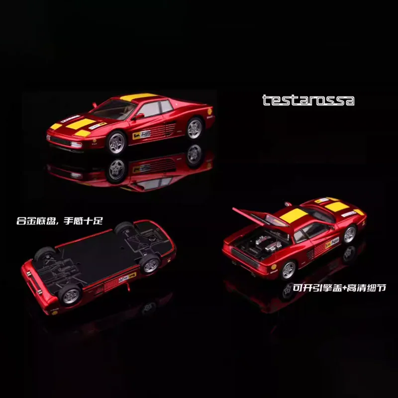 This detailed 1/64 scale diecast alloy and plastic model features a vibrant Testarossa F110 design, showcasing smooth curves, aerodynamic contours, and distinctive side vents. Available in metallic red, standard red, and other color variants, it measures approximately 1/64 in scale with dimensions manually measured, ensuring high realism. The model features minimalist grille and headlight details, racing stripes in red and yellow, decal accents, and sporty spoilers, perfect for display, gifting, or collection. Crafted from durable alloy and plastic materials, it is a static ornament intended exclusively for adult collectors, with no electrical components or chemical concerns.