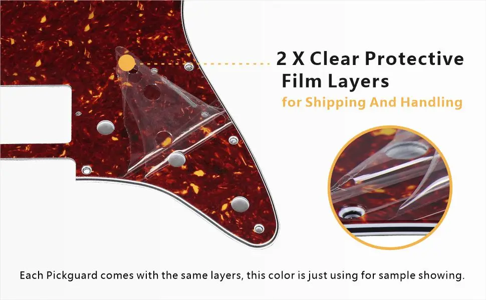 - Specifications: 11-hole mounting pattern, 4-ply construction (PVC+Celluloid), size compatible with American and standard HH Stratocaster guitars, made in Mainland, no batteries needed.