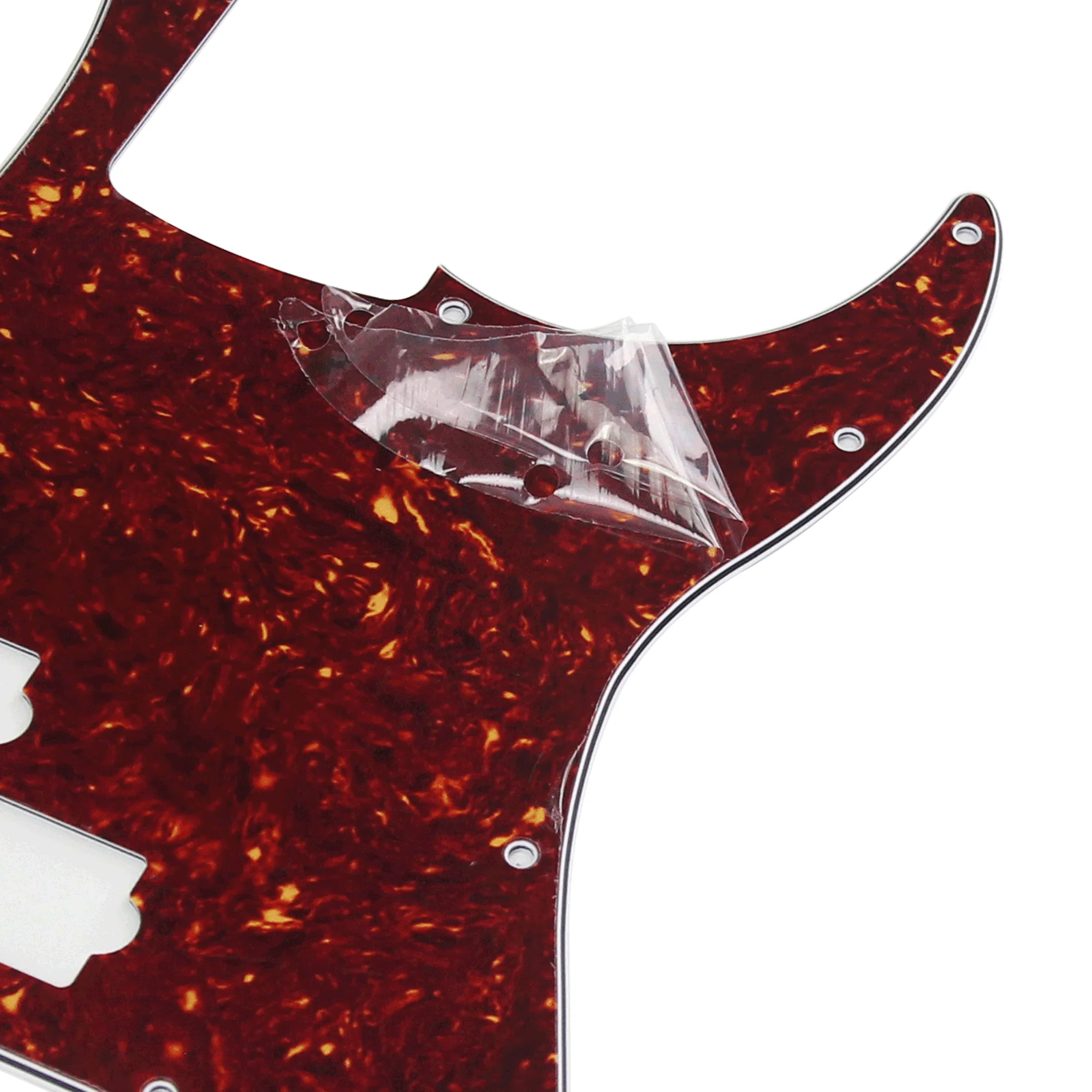 Enhance your P-Bass with this striking 4-ply red tortoise pickguard, built from 1-ply celluloid and 3-ply PVC for durability and style. Designed to fit most standard Mexican and American 13-hole P-Bass models, it features 13 screw holes along the side and a clean, glossy finish protected by a removable two-layer film. Its vibrant red and orange marbled pattern adds a bold, vintage aesthetic while providing effective anti-scratch protection. Easy to install with included screws, this pickguard offers a perfect combination of style, protection, and compatibility, making your bass look as good as it sounds.