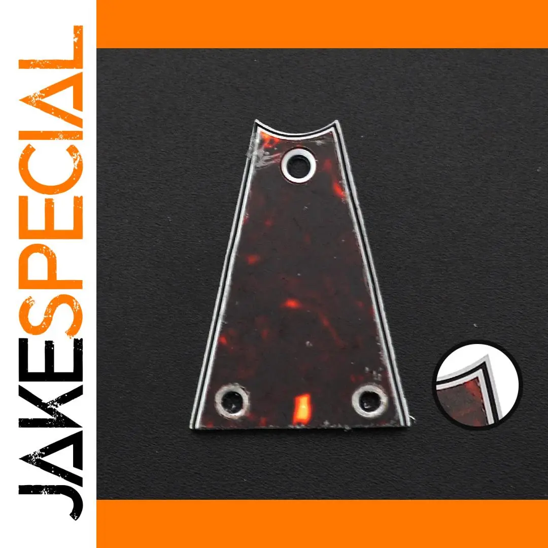 This striking 3-ply triangular truss rod cover by GETMUSIC is designed to enhance the aesthetic of your guitar with its captivating dark tortoiseshell motif. Featuring a luxurious glossy finish, it reflects rich shades of deep red and brown for a visually stunning effect. The rounded top edge and two straight sides ensure a perfect fit, while the three mounting holes provide a seamless installation. The contrasting white outline enhances the overall design, making it a striking addition to your guitar. Measuring approximately 42.5mm in height and 30mm in width, this durable plastic cover is suitable for guitar enthusiasts who wish to add a personal touch that speaks volumes about their style.