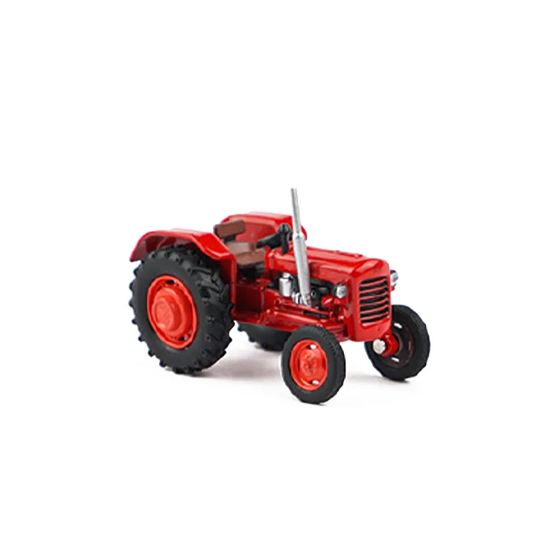Experience the charm of vintage farming with this finely crafted diecast Harvest-37 tractor miniature. Painted in a striking, glossy red, this 1:64 scale model captures the authentic look of a classic tractor, with detailed contours and realistic proportions. The model showcases a simple, rounded front grille with vertical slats, matching the bold red body. The front wheels are smaller with black tires, while the larger rear wheels feature deep treads, red hubs, and sturdy black rubber tires, offering an impressive contrast. Small exhaust pipes extend vertically from the engine, adding a touch of realism. Made entirely from durable metal, this static collectible embodies both aesthetic appeal and structural fidelity for display purposes. Perfect for enthusiasts and collectors, it elevates any collection with its nostalgic design and meticulous detail.