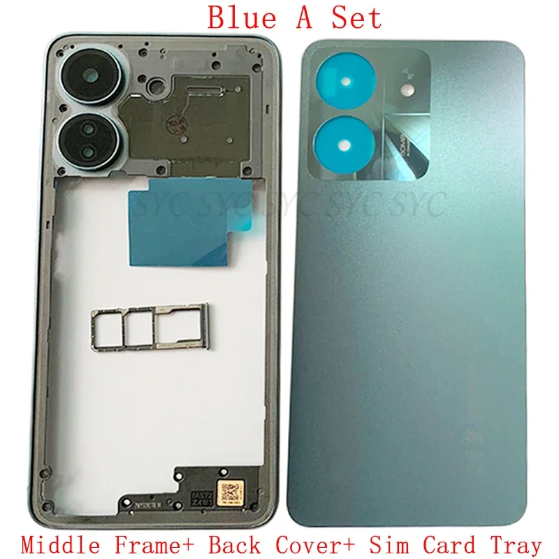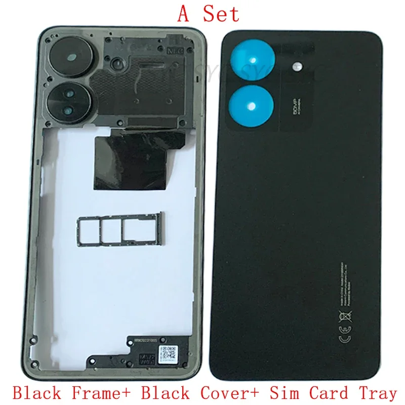 Experience the perfect fit with this replacement rear door battery cover housing case for the Xiaomi Redmi 13C. Crafted from durable black plastic, it combines functionality and style seamlessly. Designed with meticulous attention to detail, this part features precise cutouts for the camera lens, sensors, and SIM card tray, ensuring easy installation and a secure fit. The smooth matte finish provides a modern, minimalist look, essential for restoring your device's aesthetic. Available in four colors—blue, black, green, and white—you can customize your Redmi 13C to match your personality. With the included middle frame and adhesive sticker, this replacement part guarantees a snug, professional repair. It's the perfect solution for restoring your phone's original appearance and performance.