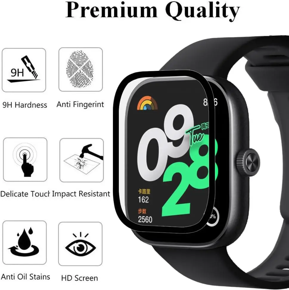 - Technical specifications include: 9D curved design, TPU material, compatible with Redmi Watch 4, available in pack sizes of 1, 3, or 5 units for customized protection needs.