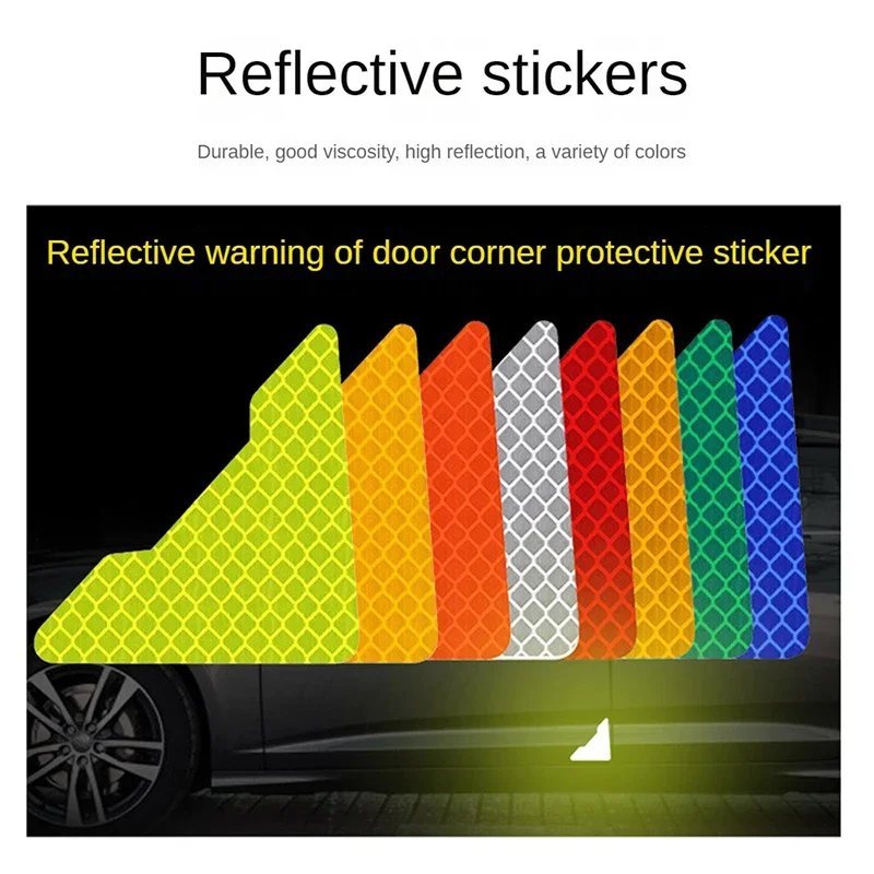 Enhance your vehicle’s safety and style with this reflective car door corner edge protector sticker, crafted from durable silicone and measuring approximately 5.7 x 6 cm. Designed for universal application on car door corners, it features highly reflective properties in vibrant colors including red, green, white, blue, orange, and yellow. Available in single-piece or four-piece sets, this versatile accessory functions as a door corner protector, warning sticker, and collision prevention device. Its sleek, modern design seamlessly blends with the vehicle’s surface, providing enhanced visibility and safety while safeguarding against accidental bumps and damage, giving you peace of mind and a more polished look for your car.