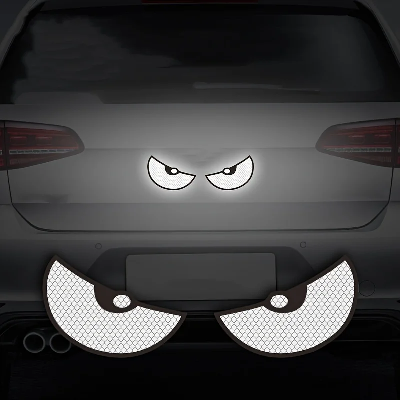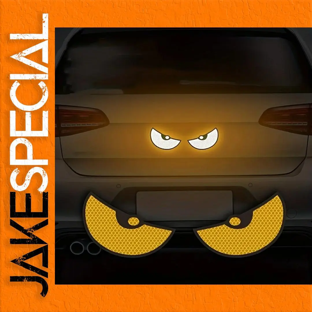 Transform your vehicle’s look while boosting safety with this striking set of reflective devil eye stickers. Designed with a fierce, aggressive style, these decals feature sharp, slanted eyes in a highly visible white reflective material that shines brightly in darkness. Accompanied by large, crescent-shaped accents in vivid yellow, they evoke a fiery, commanding presence on your car’s rear. Made from high-quality, weather-resistant material, these stickers are easy to apply on any smooth surface, ensuring durability even in harsh weather. Whether you want to enhance visibility or create a bold aesthetic, these stickers are perfect for any vehicle aiming for a powerful, eye-catching upgrade.