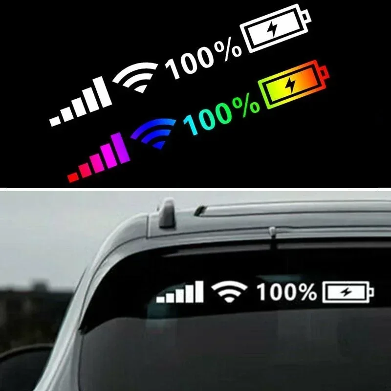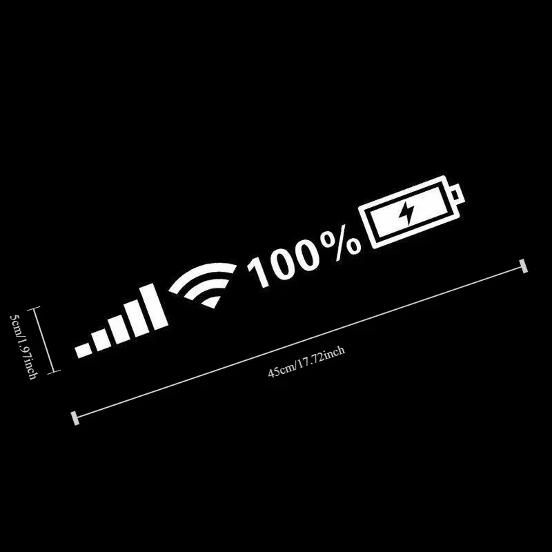 Transform your vehicle into a modern digital interface with this stylish reflective decal designed to mimic a tech status display. Measuring 45 cm long and 5 cm wide, this elongated sticker features a sleek, cartoon-inspired design with vibrant icons including signal bars, Wi-Fi, and battery indicators. Made from durable, waterproof vinyl with a glitter surface, it retains its vivid colors and reflective properties under low-light conditions. When illuminated by headlights or streetlights at night, it shines prominently, adding both a playful and sophisticated touch to your car, motorcycle, bicycle, or even laptops. Easy to apply and remove without causing damage or leaving marks, this sticker blends safety with eye-catching aesthetics.