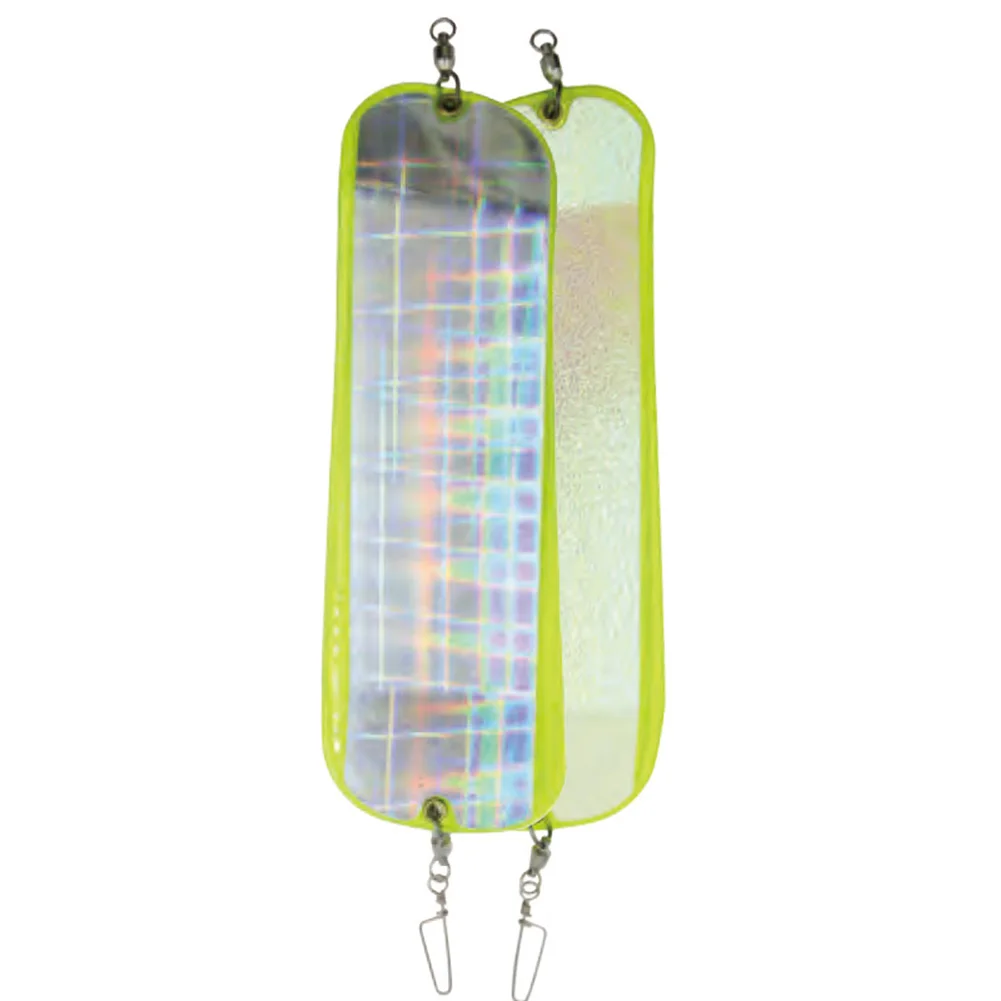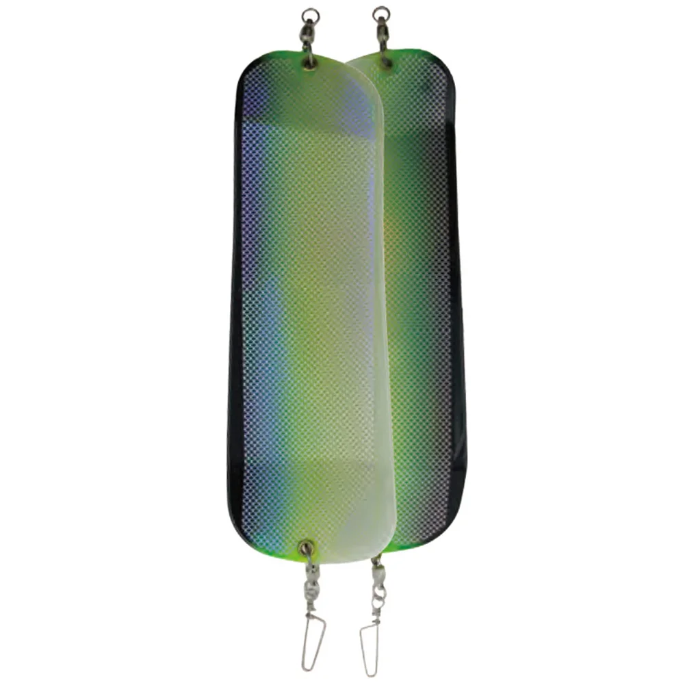 - Oval-shaped with rounded ends for streamlined movement, featuring attachment rings for easy mount on fishing lines or trolling rigs.