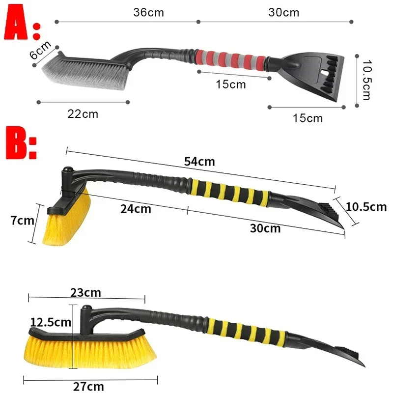 Experience efficient winter vehicle maintenance with this 2-in-1 car snow brush and ice scraper set, measuring 60 cm in length, 10 cm in width, and 5 cm in height, weighing only 300 grams. Crafted from durable ABS, PP, and EVA materials, it features an ergonomic foam grip in vibrant orange for comfortable handling. The design includes a removable, adjustable-angle head capable of sweeping, pushing, and scraping snow and frost effectively. Available in striking red and yellow color options, with model variants A and B, this versatile tool is ideal for de-icing, snow shoveling, plowing, and frost removal, offering practicality combined with bold aesthetic appeal.