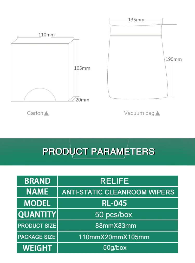 RELIFE RL-045 Anti-Static Cleanroom Wipes Set