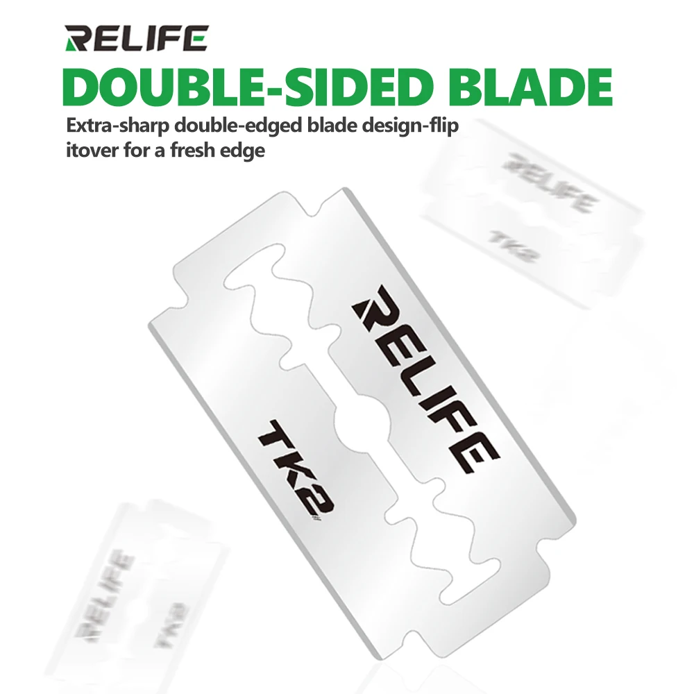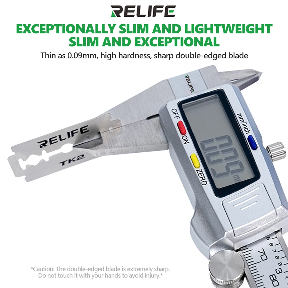 Enhance your repair capabilities with these professional-grade blades that combine quality, safety, and efficiency. Imagine handling your next phone repair with tools that offer consistent sharpness and precision. Designed for durability and ease of use, the RELIFE TK2 blades are an essential addition to your toolkit. Never worry about dull blades or rust again—just reliable performance, every time. Whether repairing smartphones professionally or tackling personal projects, these blades will help you work faster and more accurately. Invest in reliability today and experience the difference in your repair success.