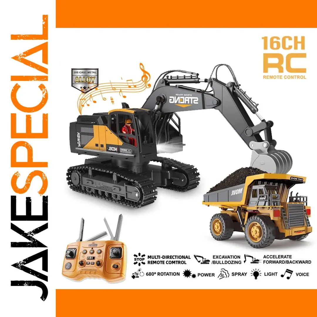 Experience the thrill of operating your own construction site with this realistic remote control excavator. Crafted from high-quality alloy and durable plastic, this model offers impressive detail and functionality. With lights, music, simulated smoke, and a functioning digging arm, it's perfect for both indoor and outdoor play. Its long control range of up to 50 meters allows you to maneuver freely, making every session engaging and fun. The excavator moves forward, backward, and rotates 680 degrees for accurate simulations. Whether you're a collector or looking for an exciting gift, this model provides hours of interactive entertainment. Easy to use, it enhances your coordination and concentration while bringing construction excitement to life in your hands.