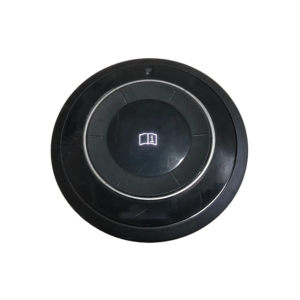 Experience seamless control of your Bose SoundTouch 20 and 30 speakers with this original remote. Its sleek, matte black finish and minimalist design make it a perfect fit for modern home setups. The round shape fits comfortably in your hand, while the central glossy circular area offers intuitive touch or button operation. Five evenly spaced, small, straight indentations surround the center, adding a subtle geometric touch. The small icon at the top indicates wireless connectivity, emphasizing ease of use from a distance. Crafted from durable plastic, this remote combines practicality with understated elegance, making it a reliable accessory for your sound system. Its simple design complements your decor while providing powerful control capabilities.