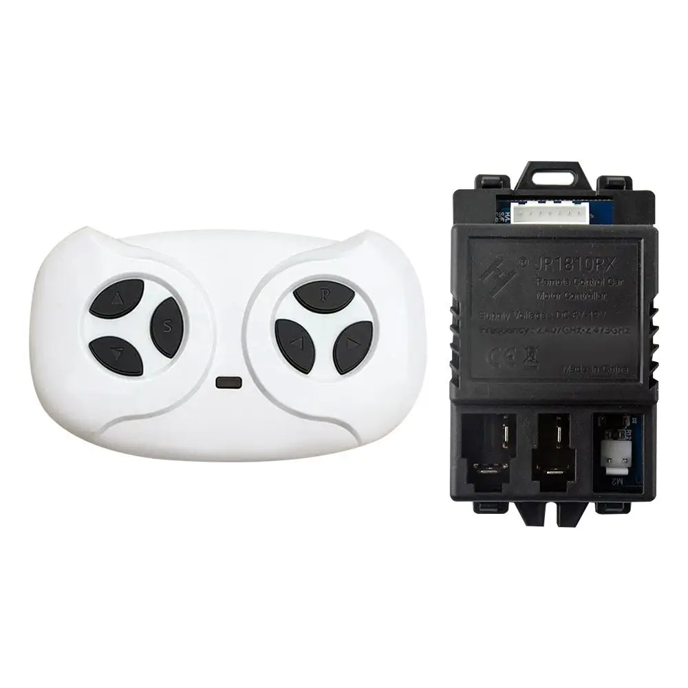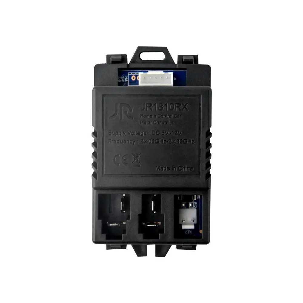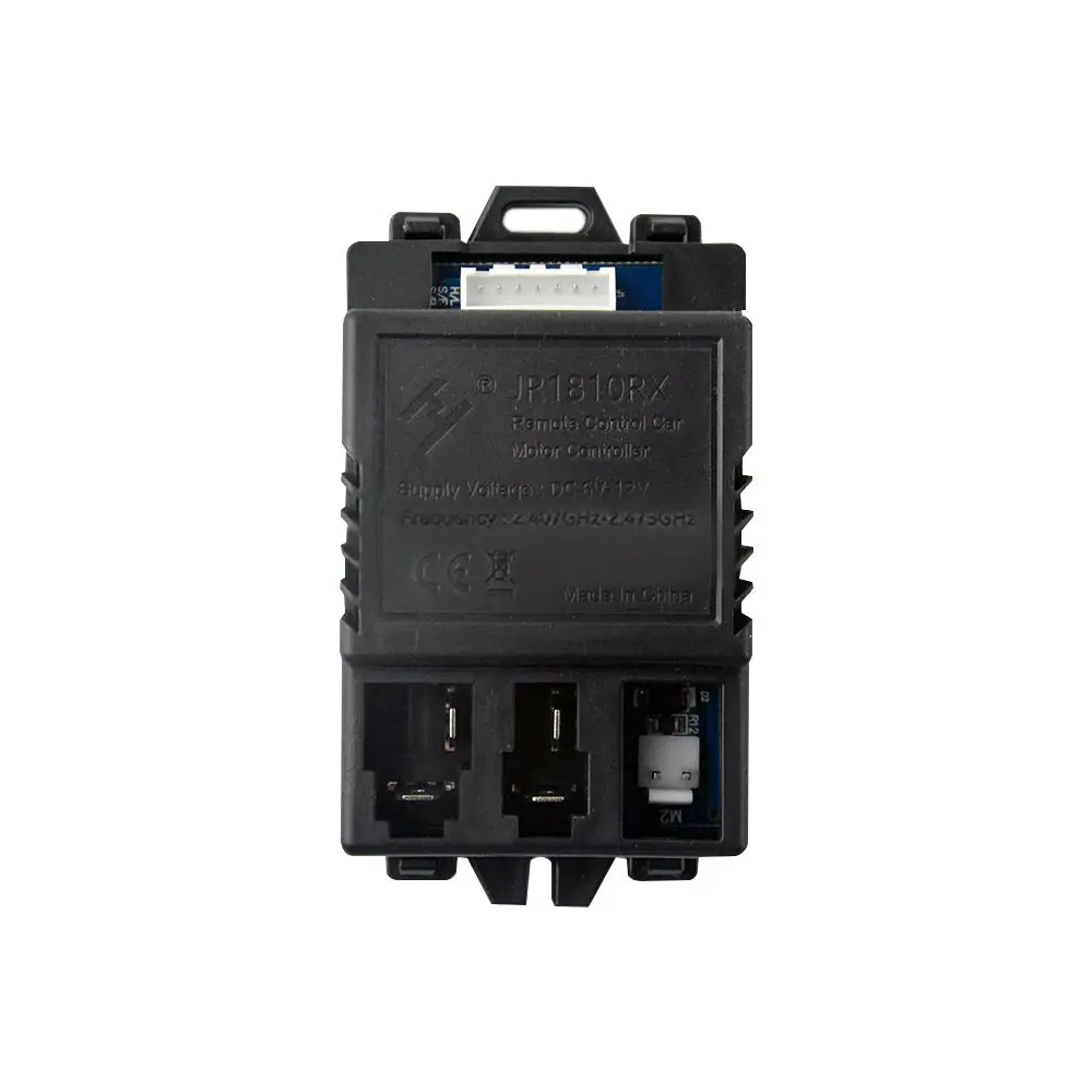 Experience seamless control with this high-quality remote receiver designed specifically for children’s electric cars. Crafted from durable plastic, it combines functionality with a sleek aesthetic, ensuring trustworthy performance for your child's ride-on vehicle. The remote measures 13 cm wide and 8 cm high with a smooth, ergonomic shape that fits comfortably in your hand. The black receiver unit, sized at 10 cm by 5.5 cm, features a straightforward design with terminal ports for easy wiring and setup. Compatible with models like JR1810RX, this system guarantees precise operation once the digital model number and frequency are correctly matched. Invest in a reliable upgrade that guarantees safety and joy during every ride.