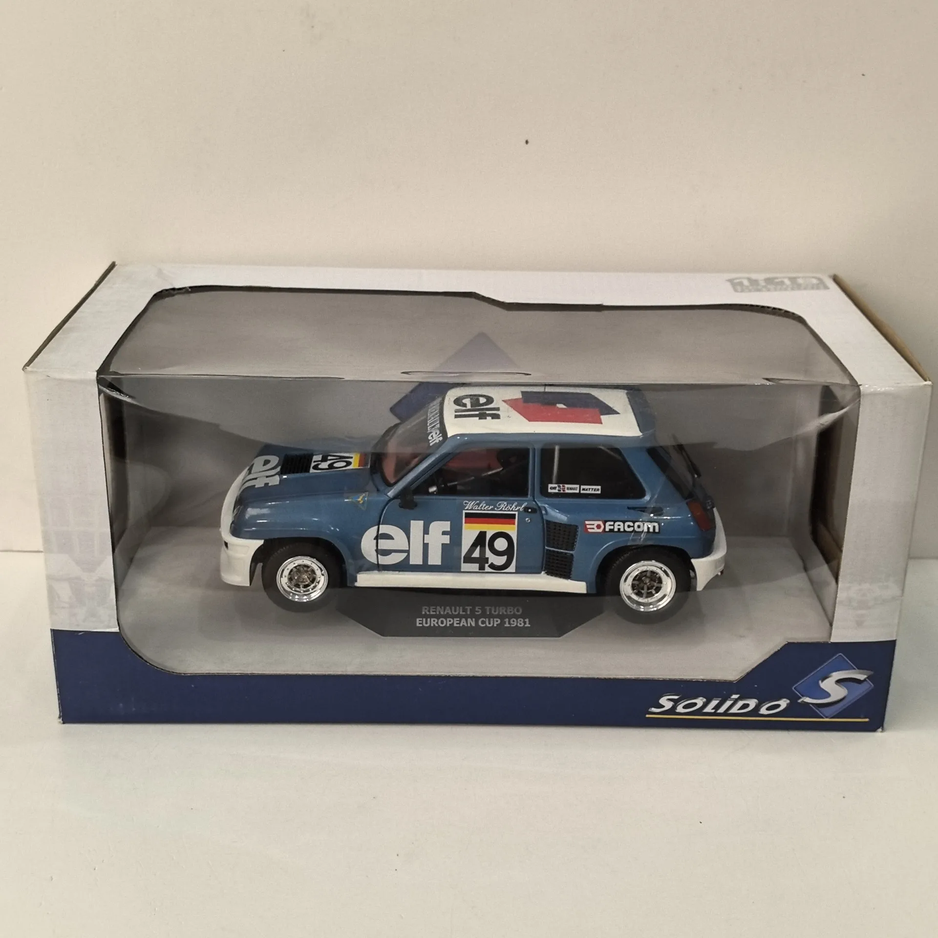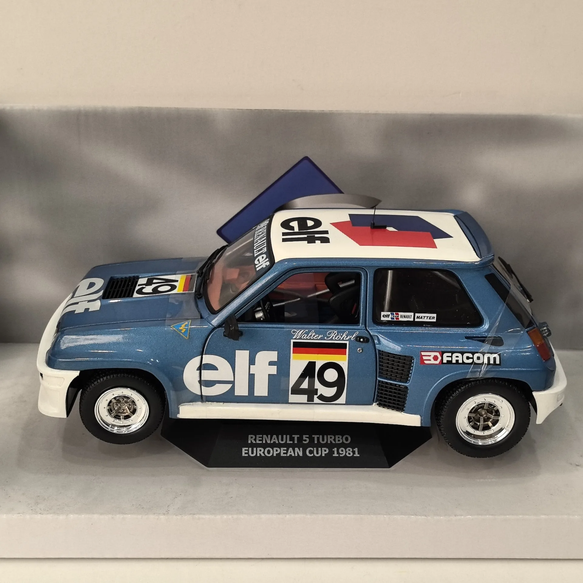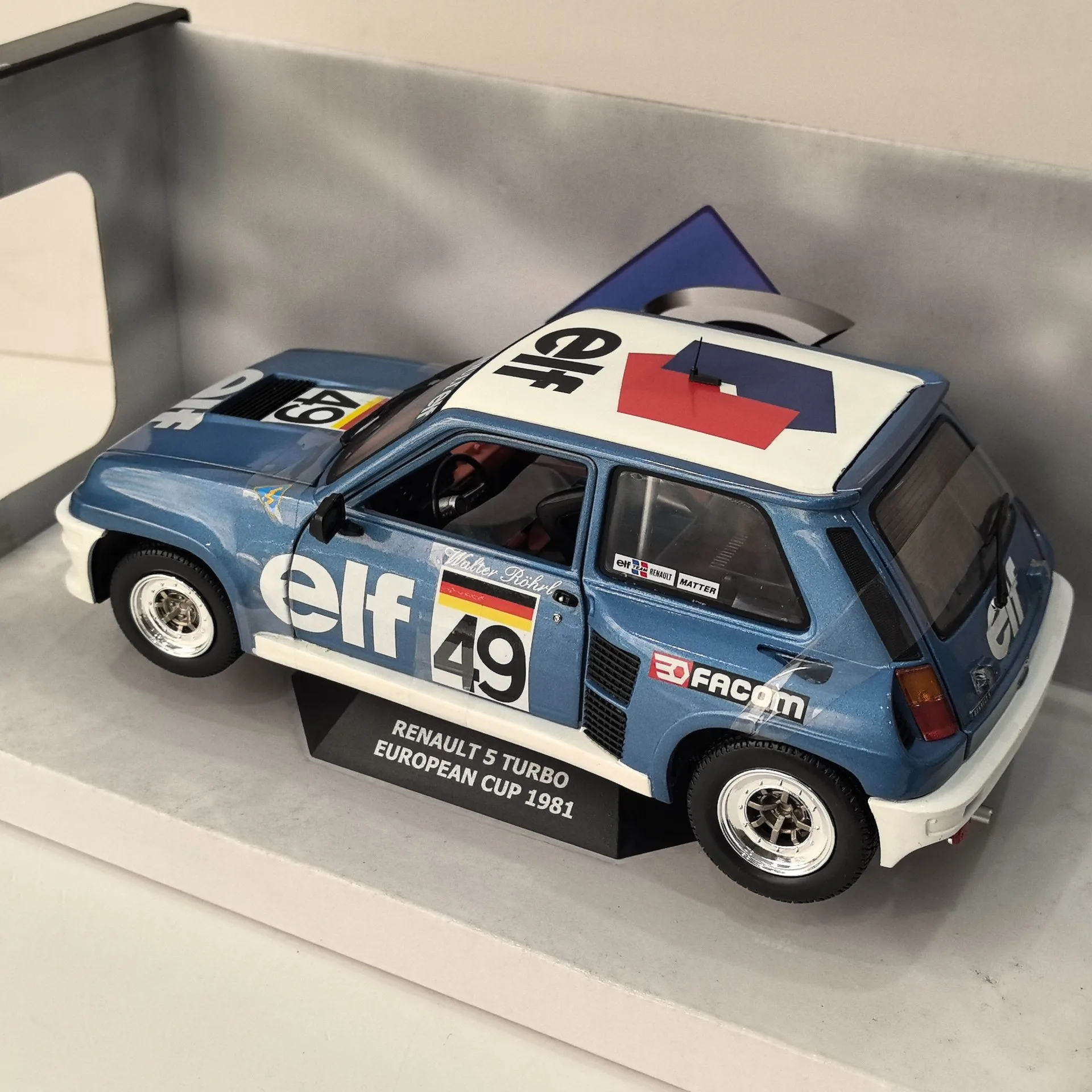 Experience the thrill of rally racing with this detailed 1:18 scale diecast model of the Renault 5 Turbo #49 from 1981. Crafted from alloy with realistic black vents, grille details, and vibrant blue paint accented by racing decals, this collectible features functional silver rims and black tires for added authenticity. The transparent windows reveal an intricately detailed interior and the model’s wheels can turn for dynamic display options. Perfect for adult collectors, this high-quality finished ornament measures approximately 1:18, conforms to safety standards, and includes an original box, making it an ideal addition to any automotive or racing collection.