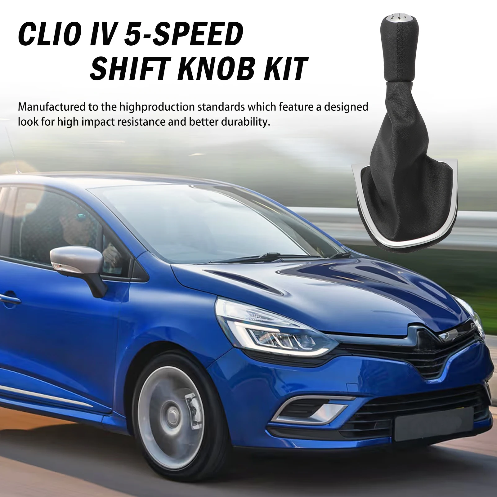 Enhance your driving experience with this premium 5-speed gear shift kit for Renault Clio IV models from 2012 to 2020. Featuring a black faux leather shift handle with a silver-colored retainer ring and a sleek outer frame, this replacement part offers a perfect fit, easy installation, and durable construction. The ergonomic design ensures comfortable gripping, while the high-quality materials and reliable assembly provide long-lasting performance. Whether you’re upgrading your vehicle’s interior or replacing a worn-out shifter, this kit combines style and functionality, adding a refined touch to your Clio IV’s interior and ensuring a seamless gear-changing experience.