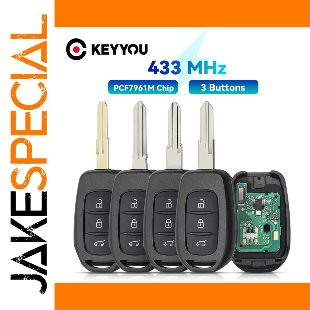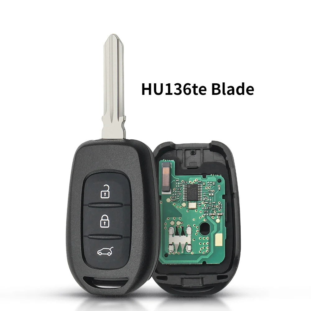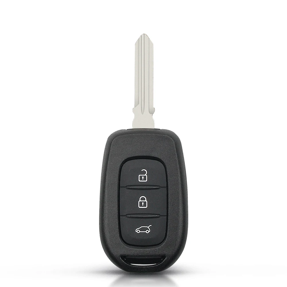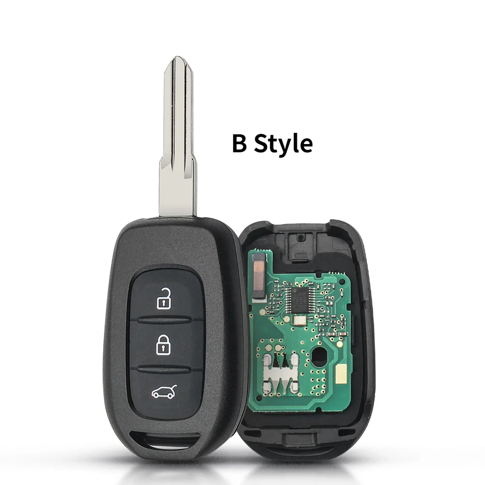 Upgrade your vehicle’s security with this sleek black remote key compatible with Renault Clio4, Sandero, Master, Trafic, Dacia Logan, Lodgy, Dokker, and Duster models. Featuring a durable ABS housing, three functional buttons with white icons—lock, unlock, and trunk—and a protruding silver key blade, this remote offers a compact, modern design. Inside, it contains a precise green circuit board with a PCF7961M transponder chip operating at 433MHz. The kit includes a key blank, battery, and chip, requiring professional programming and blade cutting before use. An ideal replacement, combining reliable craftsmanship with elegant style.