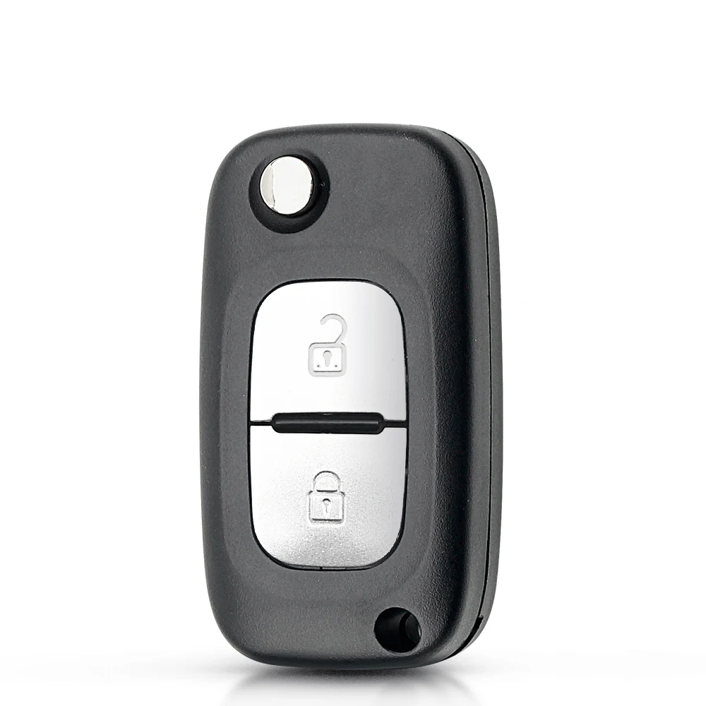 Upgrade your Renault vehicle with this sleek, minimalist black remote key compatible with Clio III, Kangoo, Master, Modus, and Twingo models. Crafted from durable ABS and metal, it features either 2 or 3 pressable silver buttons arranged vertically for easy locking, unlocking, and trunk access. The remote includes a circuit board, key blade, transponder chip (PCF7961) operating at 433 MHz, and a battery, all designed for DIY programming and easy replacement. Its modern design offers a perfect blend of functionality and style, ensuring reliable operation when properly programmed at your local locksmith. An ideal choice for adding convenience and a sophisticated touch to your vehicle.
