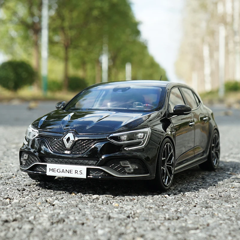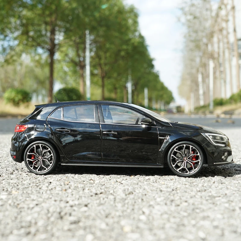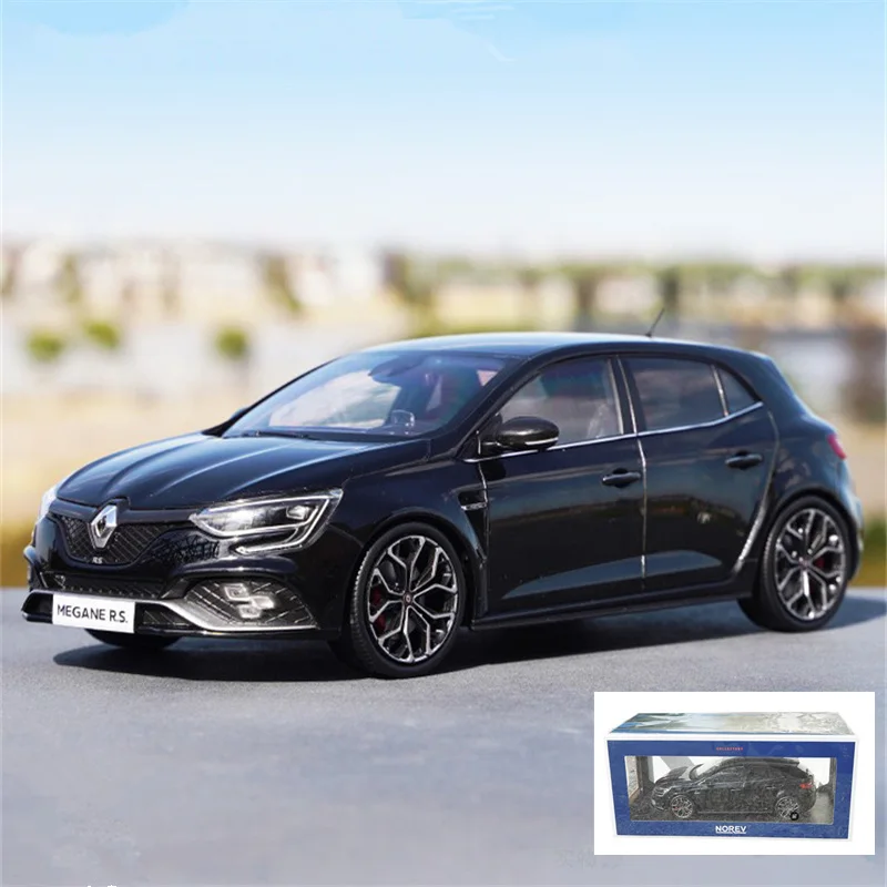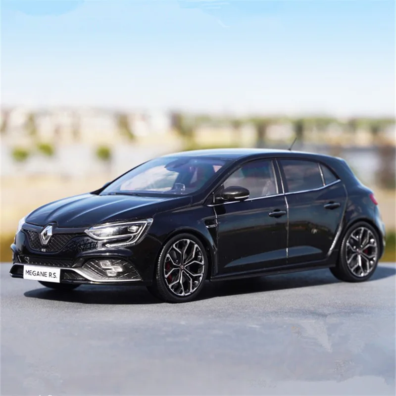 The 1:18 scale diecast model of the Renault Megane RS sports car is a stunning representation of automotive excellence. Featuring a sleek black finish that emphasizes its sporty aesthetics, this model showcases intricate details such as a sculpted hood and an angular grille with the Renault logo. Its streamlined silhouette and smooth lines evoke the essence of a compact hatchback, while the expertly crafted headlights and detailed side panels enhance its visual appeal. The real charm lies in its multi-spoke wheels with a shiny silver finish and vibrant red brake calipers, creating a captivating contrast. This collectible model, made from durable alloy and plastic, is perfect for display without need for batteries.