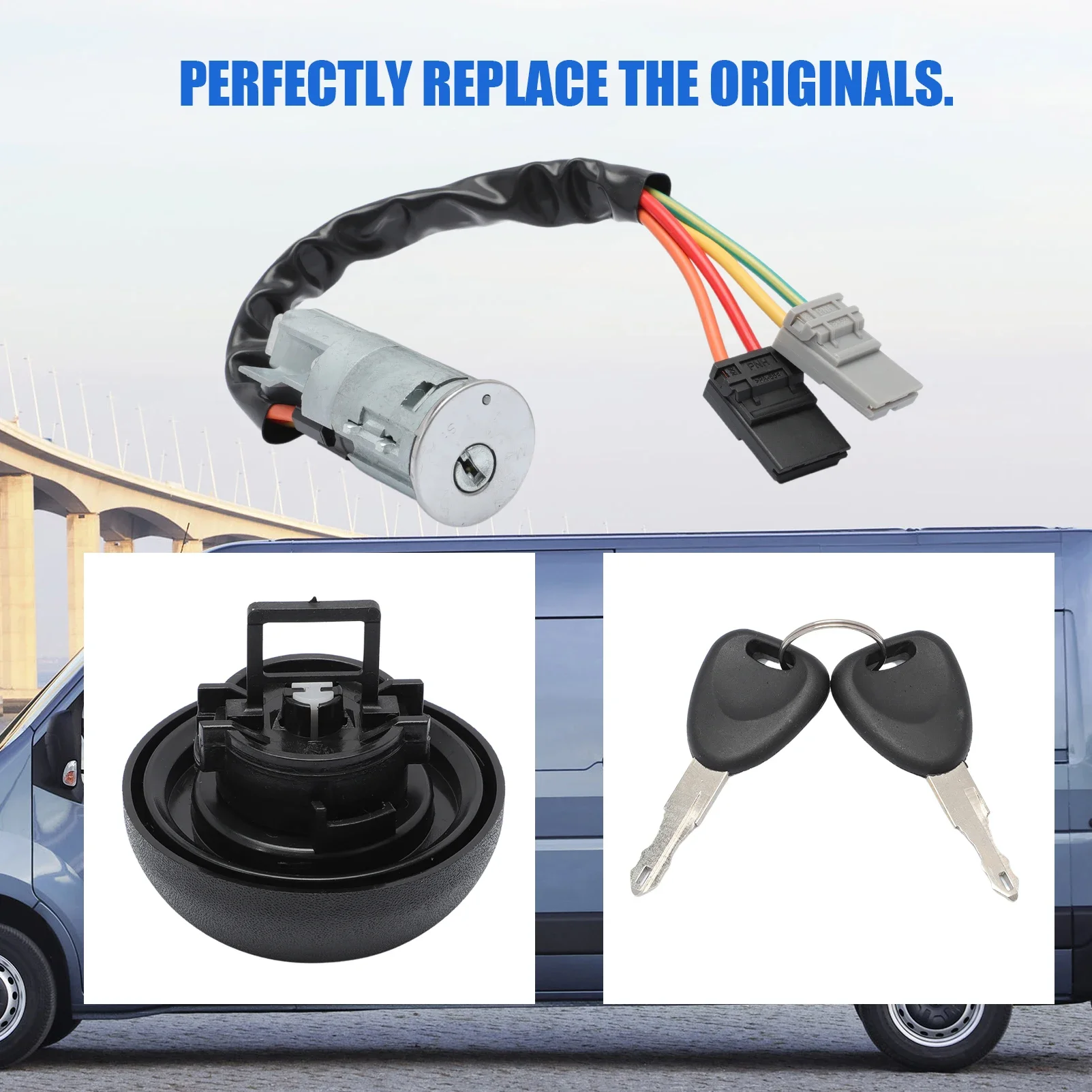The Car Ignition Steering Switch Barrel Lock is meticulously engineered to enhance the reliability of your vehicle's ignition system. Designed specifically for various Renault and Nissan models, this assembly brings together a shiny metallic barrel lock cylinder, color-coded wire connections, and a sturdy black plastic mounting bracket. Included with the assembly are two sleek black keys to ensure easy access and operation. With OEM part numbers 7701471591 and 7701475696, you can trust that this product fits seamlessly into your compatible vehicle, providing smooth ignition operation while ensuring peace of mind on the road.