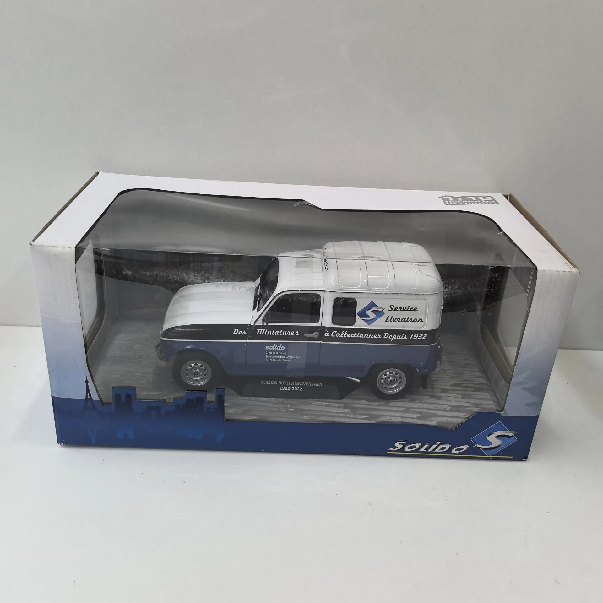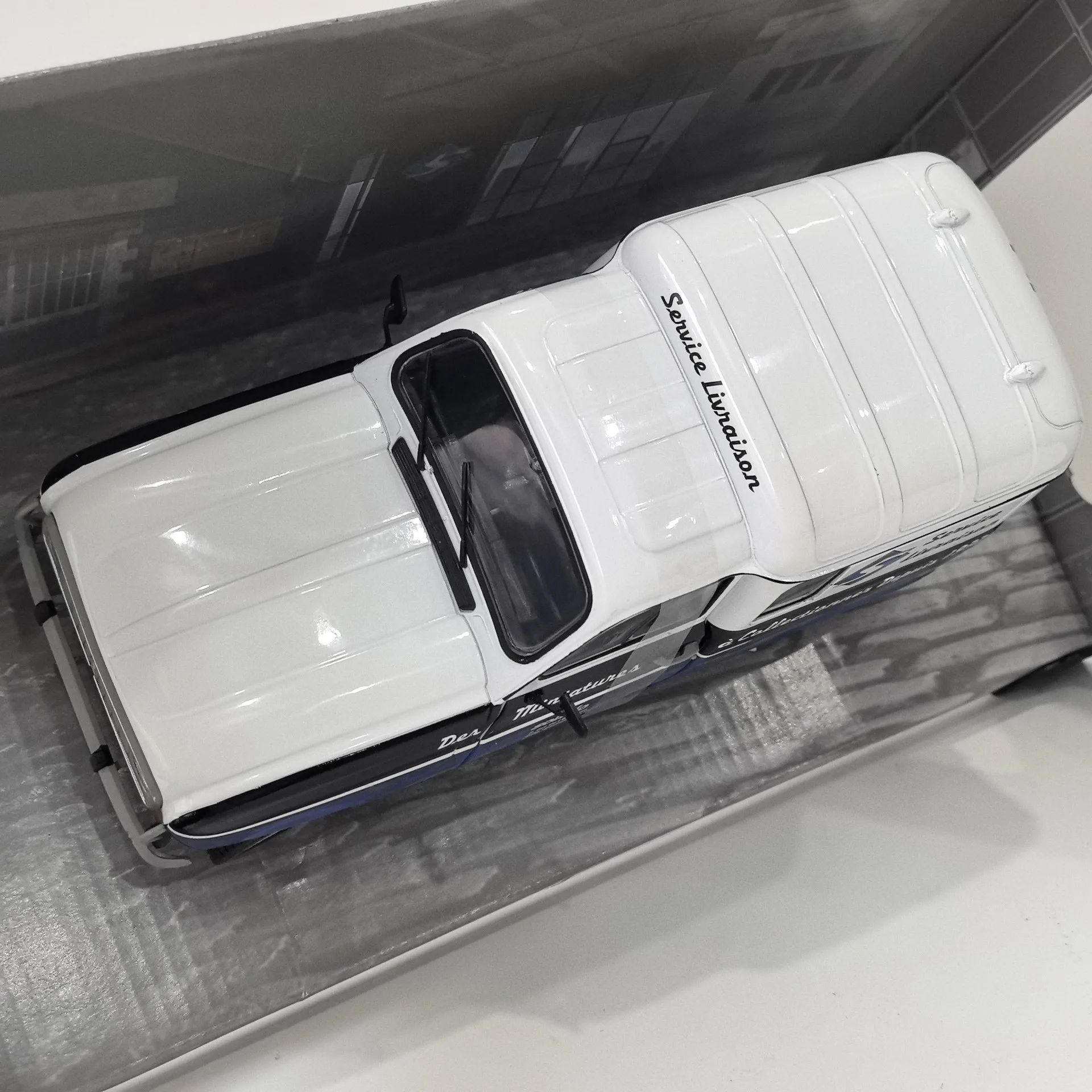 Step into the world of vintage automobiles with this beautifully crafted 1/18 scale model of the Renault R4 F4, celebrating its 90th anniversary. Made from durable diecast metal, this collectible miniature captures the essence of the original vehicle with an impressive level of detail. The model features a sleek white roof and hood, contrasted by vibrant blue side panels and a striking black middle section, creating a visually appealing color scheme. Its surface has a polished finish that reflects light, enhancing realism. The transparent windows reveal interior details like seats and steering wheel, while the front grille and headlights are meticulously sculpted. With operational wheels that turn, and openable side doors, this model offers an engaging display piece that exudes craftsmanship and vintage charm.